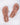 The Flora Sandal is also based on the Wave footbed, with an almond-shaped toe and slightly chunkier heel; adding some finesse. The adjustable ankle strap is linked to the toe post with a beautifully adorned front strap, displaying a flower with a Pearl at the centre, and lightly glittered petals; shown here in Blush.