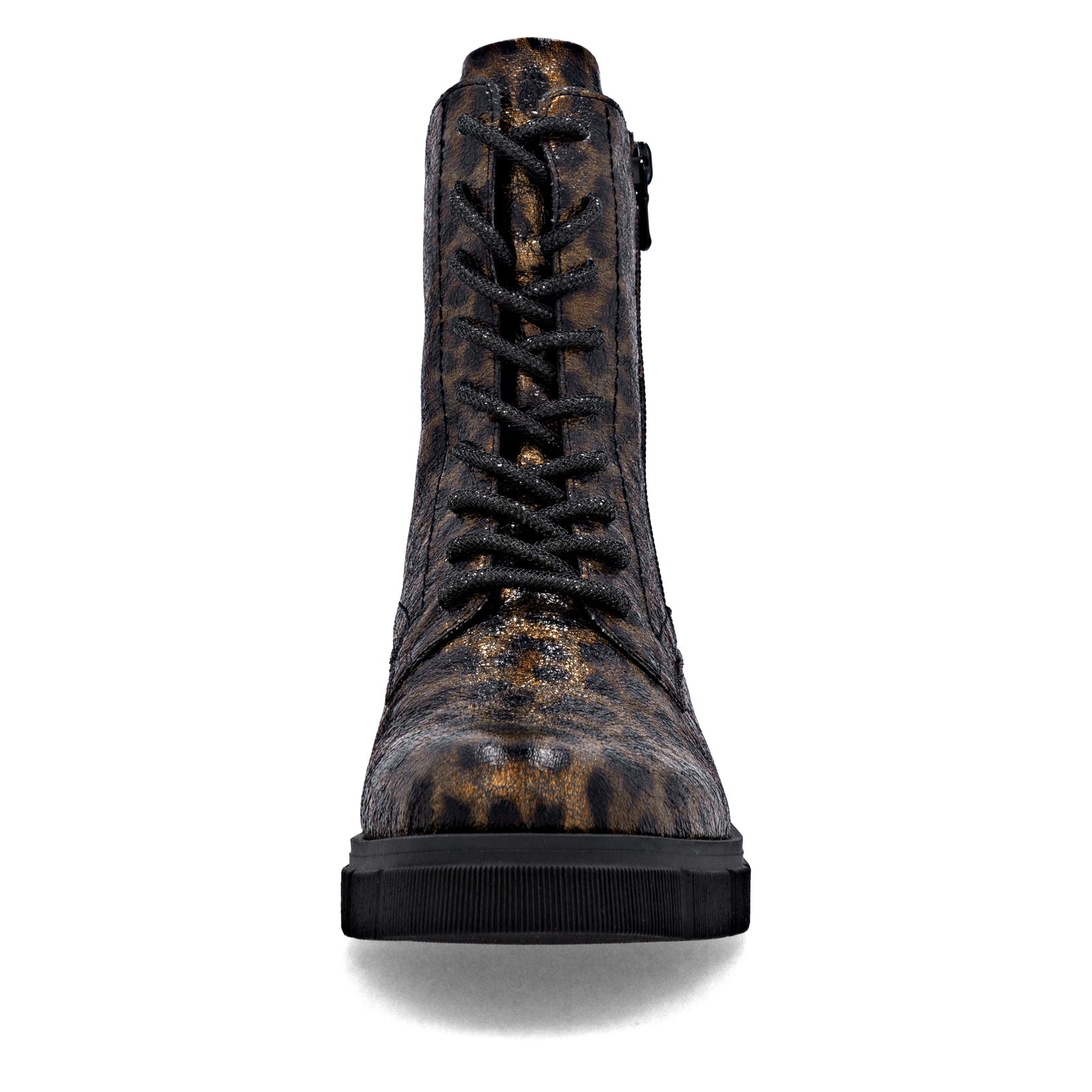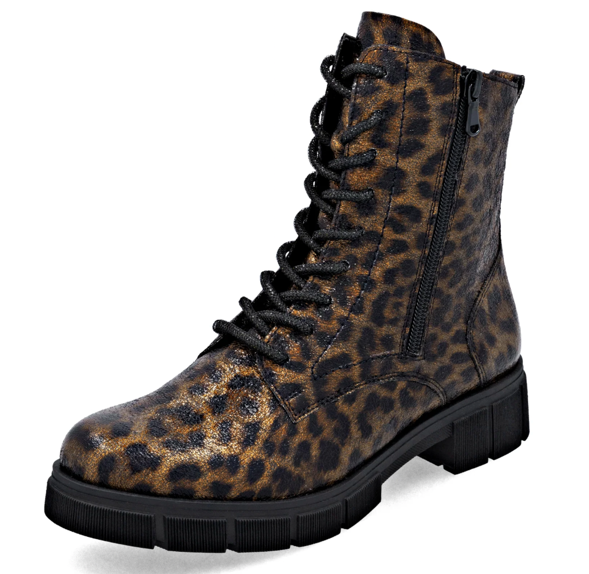Bring on the style! These brown and black Remonte lace-up boots are the ultimate must-have for your shoe collection this season. Featuring a smart blend of laces and a zipper, they offer perfect support while being super easy to slip on and off. Plus, you get extra laces to switch up your look! The playful leopard print adds that wow factor, while the padded, removable insole and grippy sole keep you comfy and steady on all surfaces. With a roomy comfort width, these boots feel like they were made just for your feet!