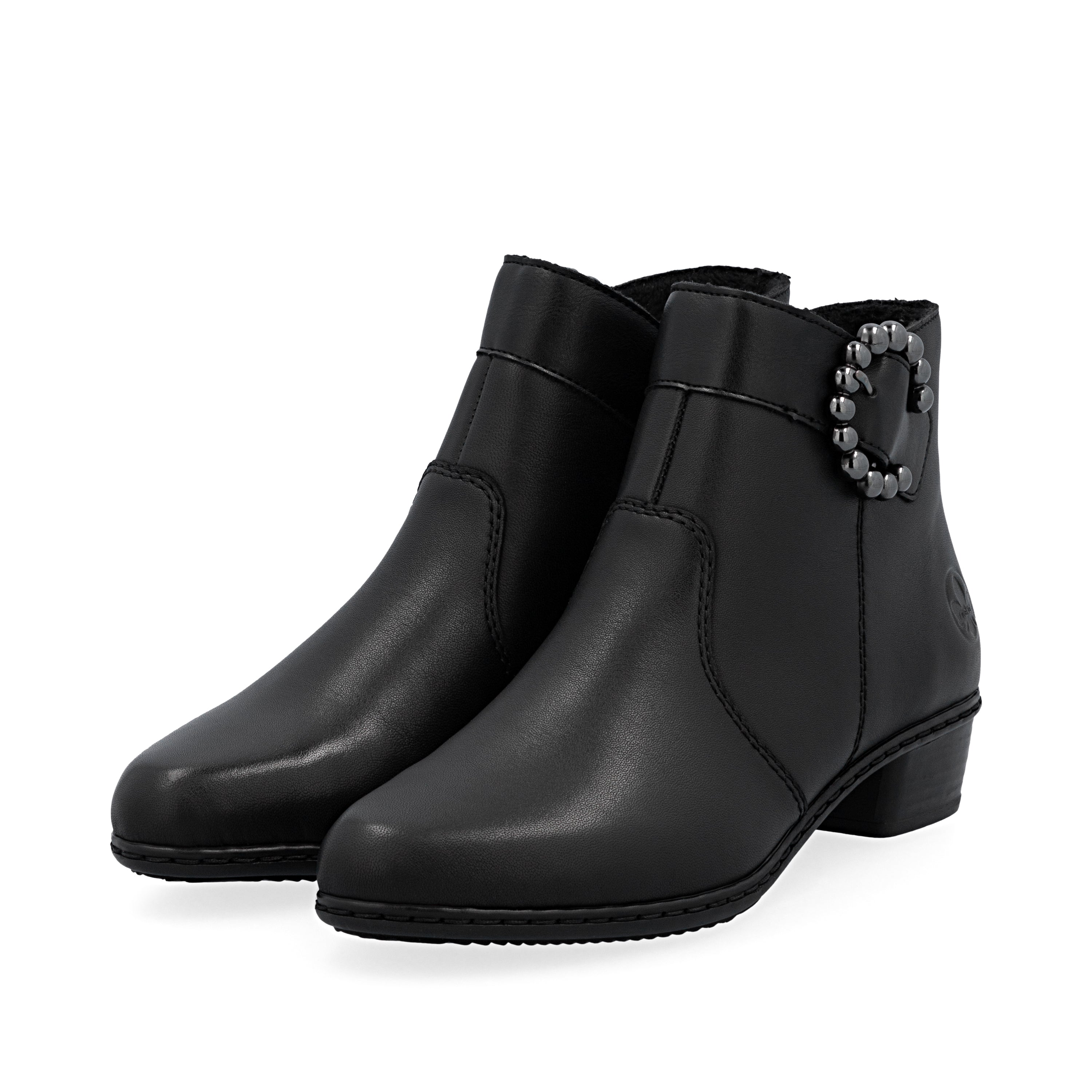 A forever favorite! These sleek Rieker ankle boots blend comfort, practicality, and flair effortlessly. Their sturdy stitchdown construction ensures durability while keeping the sole flexible for easy movement. A handy zipper lets you slip them on in a flash, and the stylish buckle adds a perfect finishing touch. Thanks to the shock-absorbing, lightweight sole with a block heel, your feet get a cozy treat with every step—ready for endless strolls ahead!