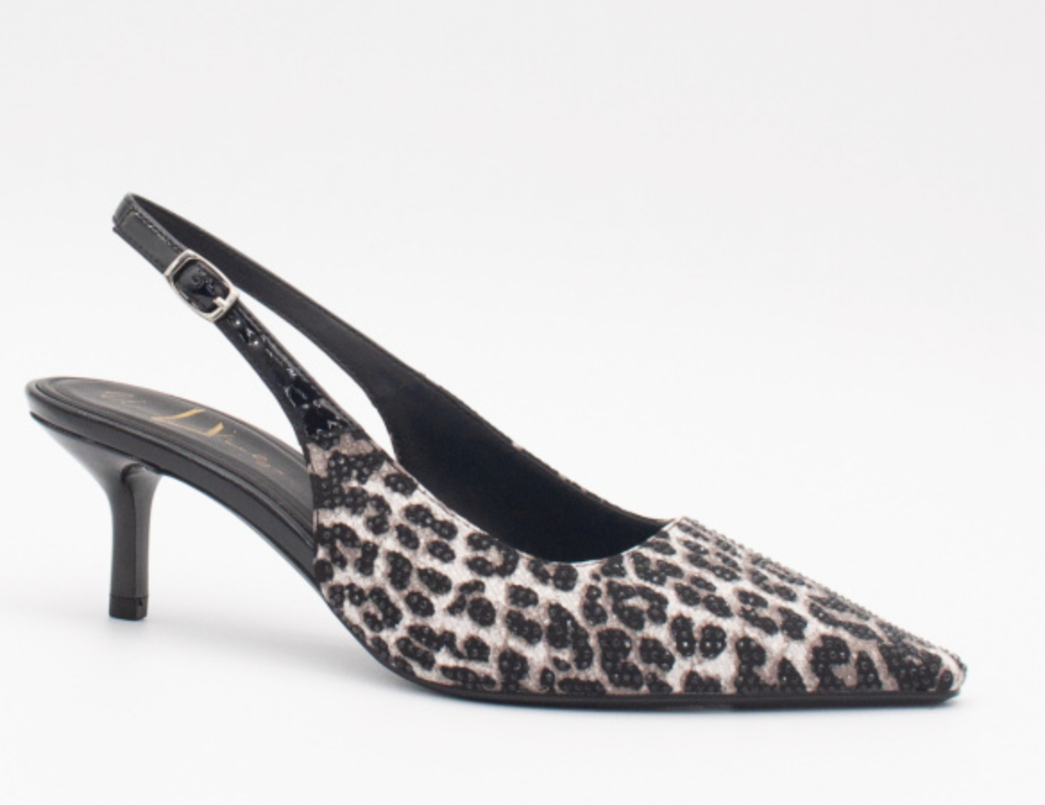 Bring some sparkle to your step with the Una Healy Bird Hunter slingback heels. Featuring a dazzling leopard print shimmer, these pointed-toe beauties are made to catch eyes. The adjustable slingback strap ensures a snug fit, while the 5.5cm heel lifts your style perfectly for a day full of confident flair.