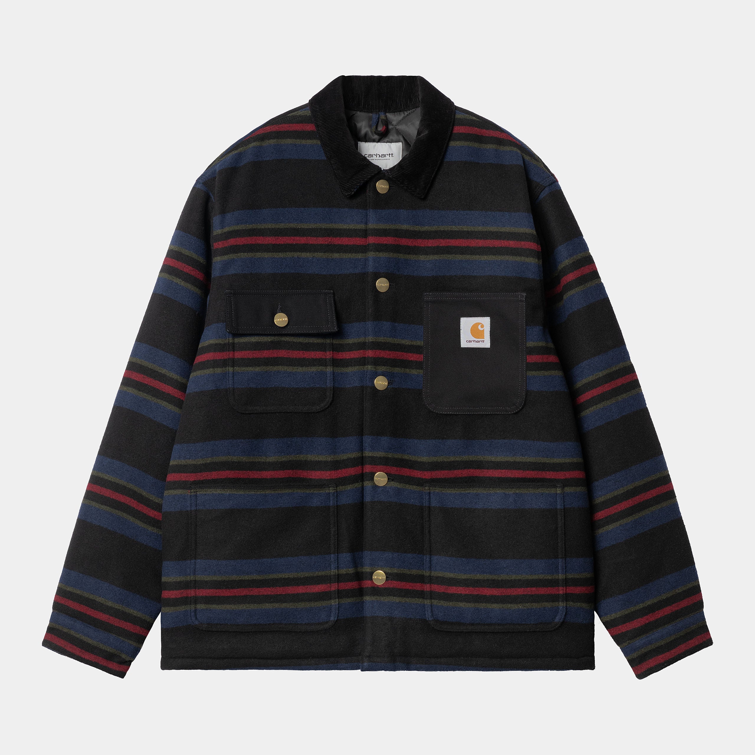 The Carhartt Oregon Jacket is made of a heavyweight polyester-blend flannel and has a silhouette based on a classic chore coat. The item features allover stripes inspired by the brand's blanket linings, typically found in our iconic jacket styles. Inside, the item is diamond-quilted for warmth and lined with nylon taffeta. Four front pockets and a woven Square Label complete the design.