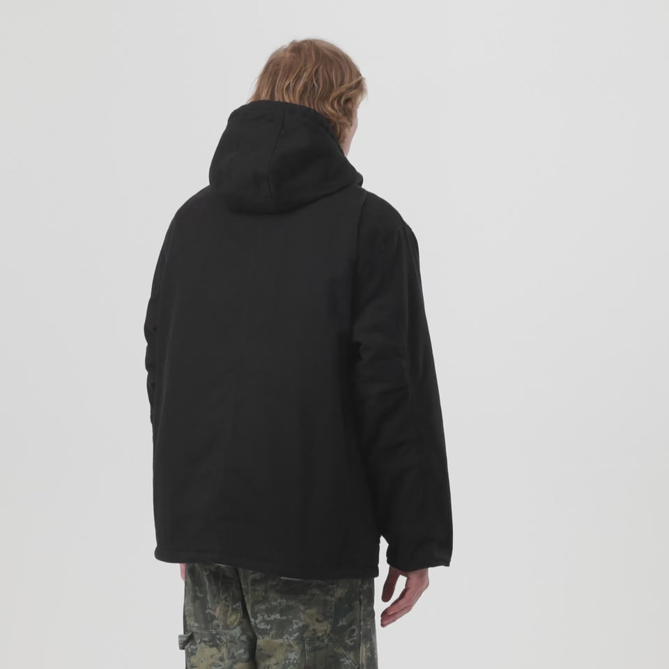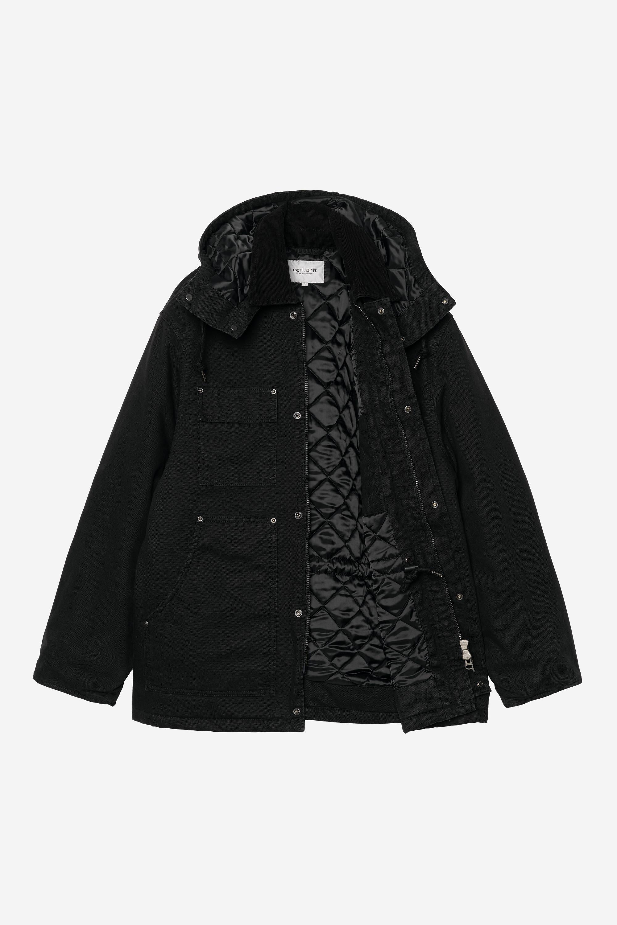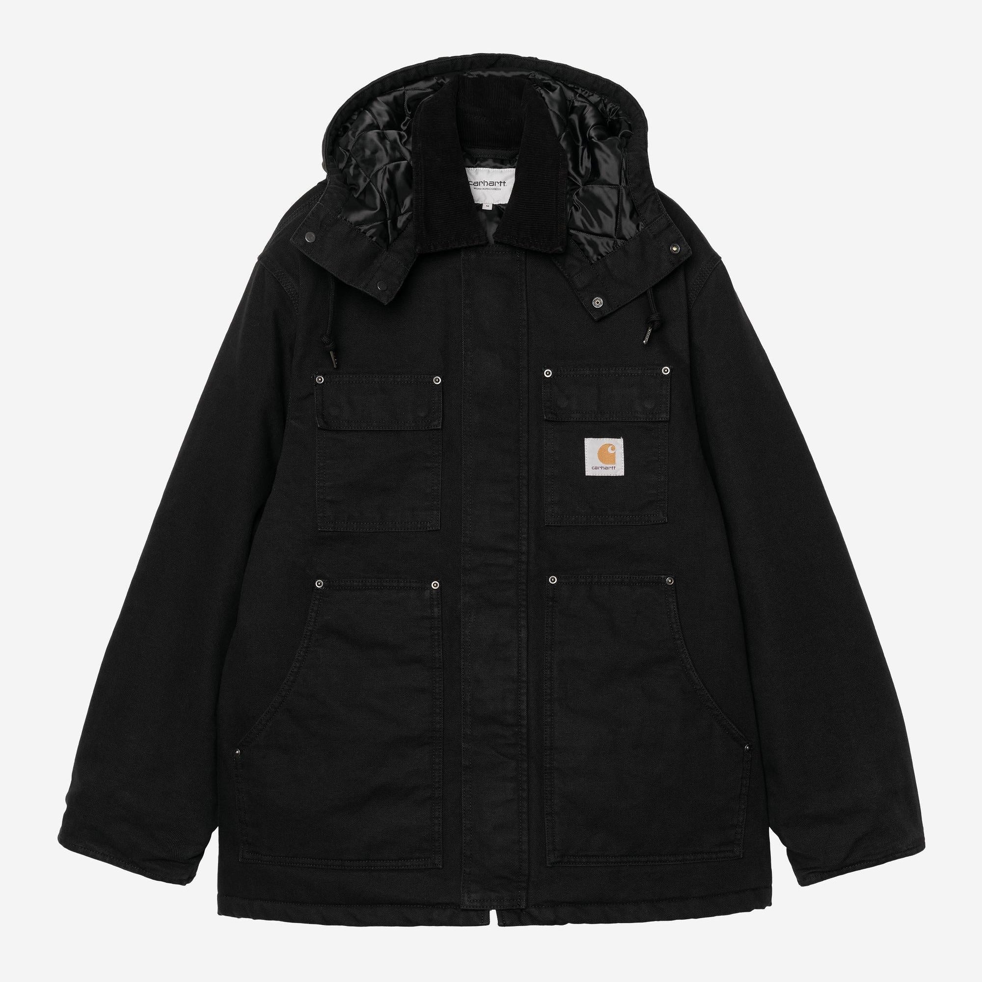 The Carhartt WIP Ambel Coat is made from a heavyweight cotton canvas with a diamond-quilted lining. The style features a detachable hood and a corduroy collar. Triple stitching, bartack stitching and rivets at vital stress points provide extra durability. The item is detailed with two chest pockets and two lower side pockets. A woven Square Label completes the design.
