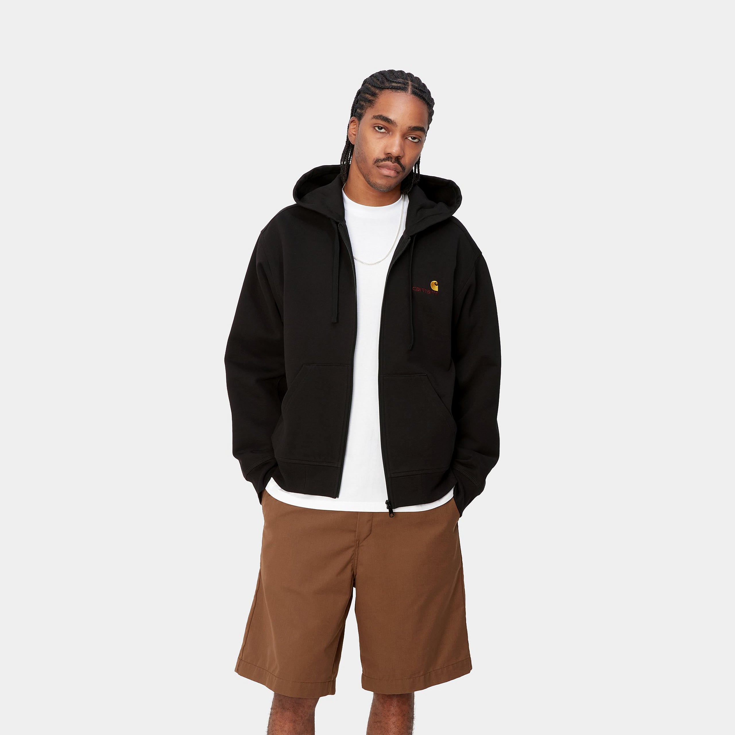 Carhartt WIP Mens American Script Zip Front Jacket Hoodie - Black