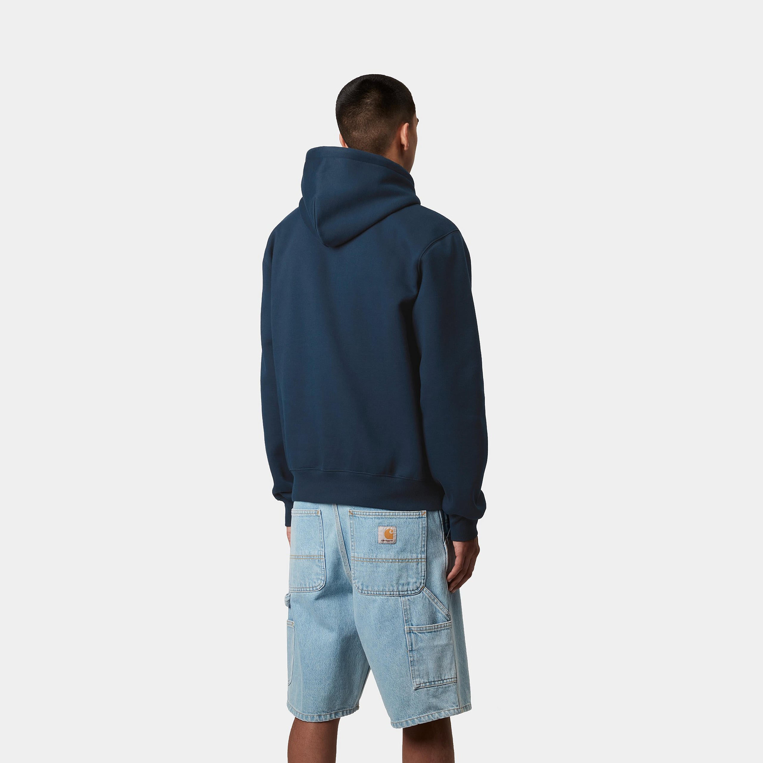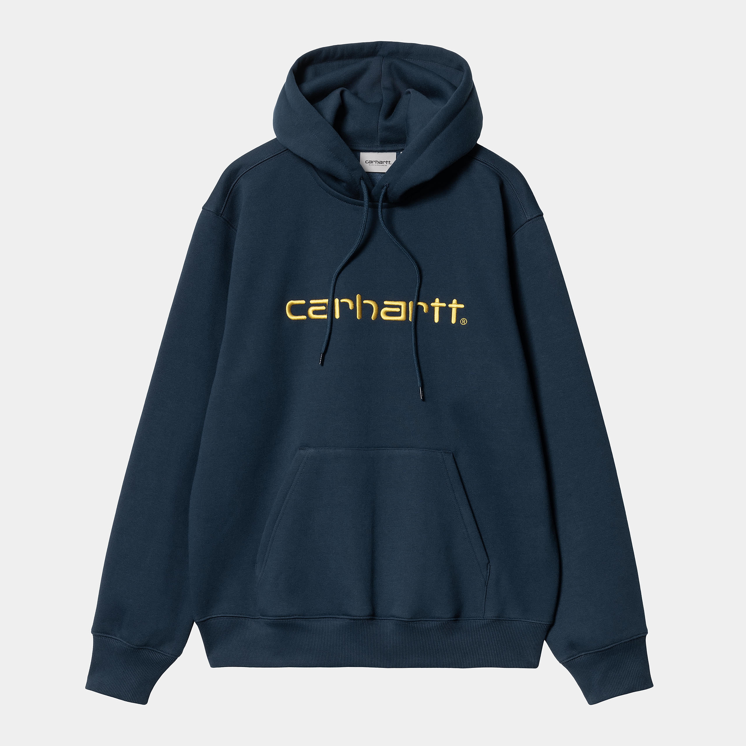 The Hooded Carhartt Sweatshirt is made in a loose fit from heavyweight, brushed polycotton jersey, meaning it has a soft fleece-like backing. It also features a kangaroo pocket, as well as a ribbed hem and cuffs. An embroidered Script Logo appears on the chest.