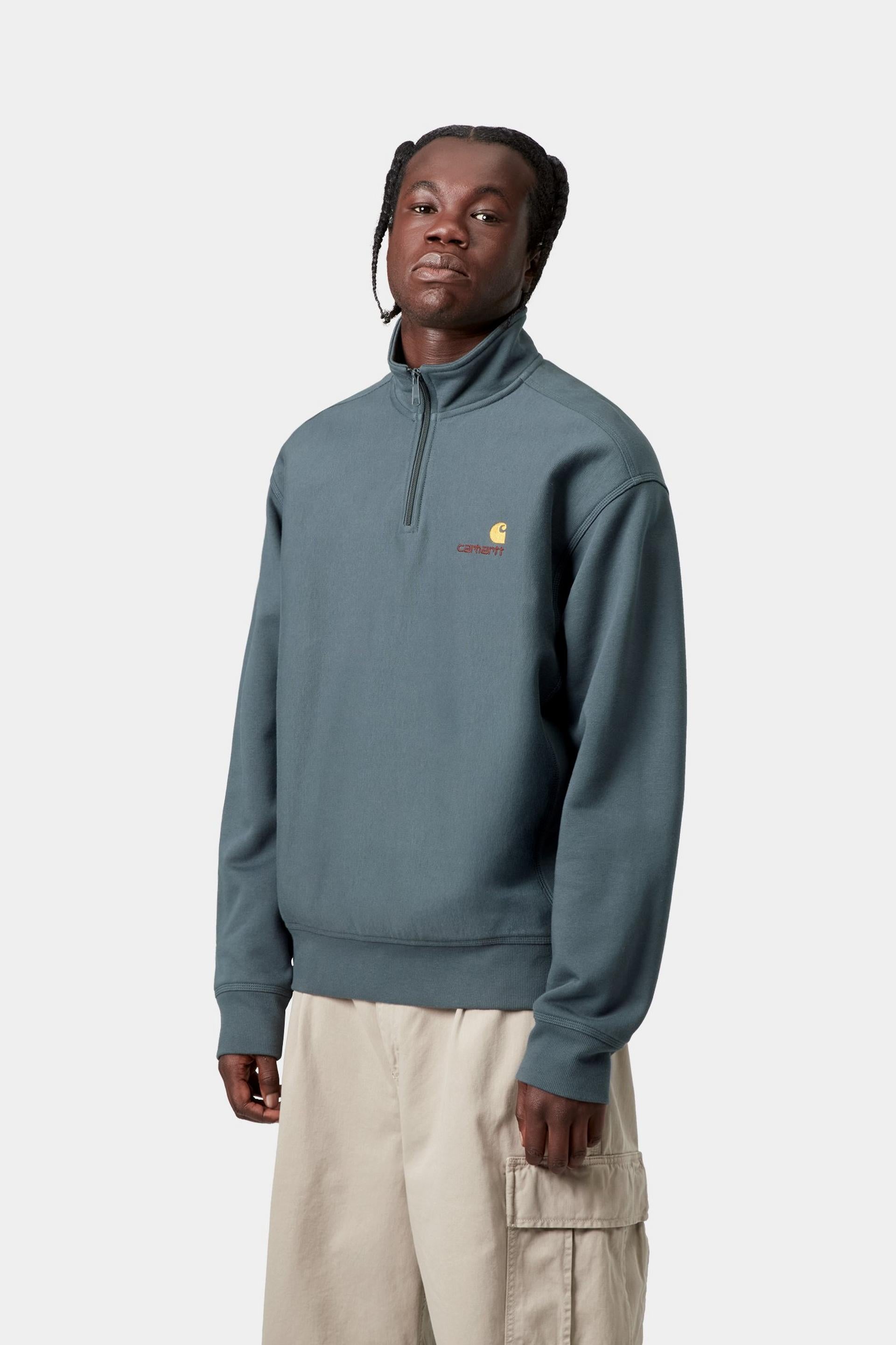 Carhartt WIP Mens Half Zip American Script Sweat Top | Office Blue