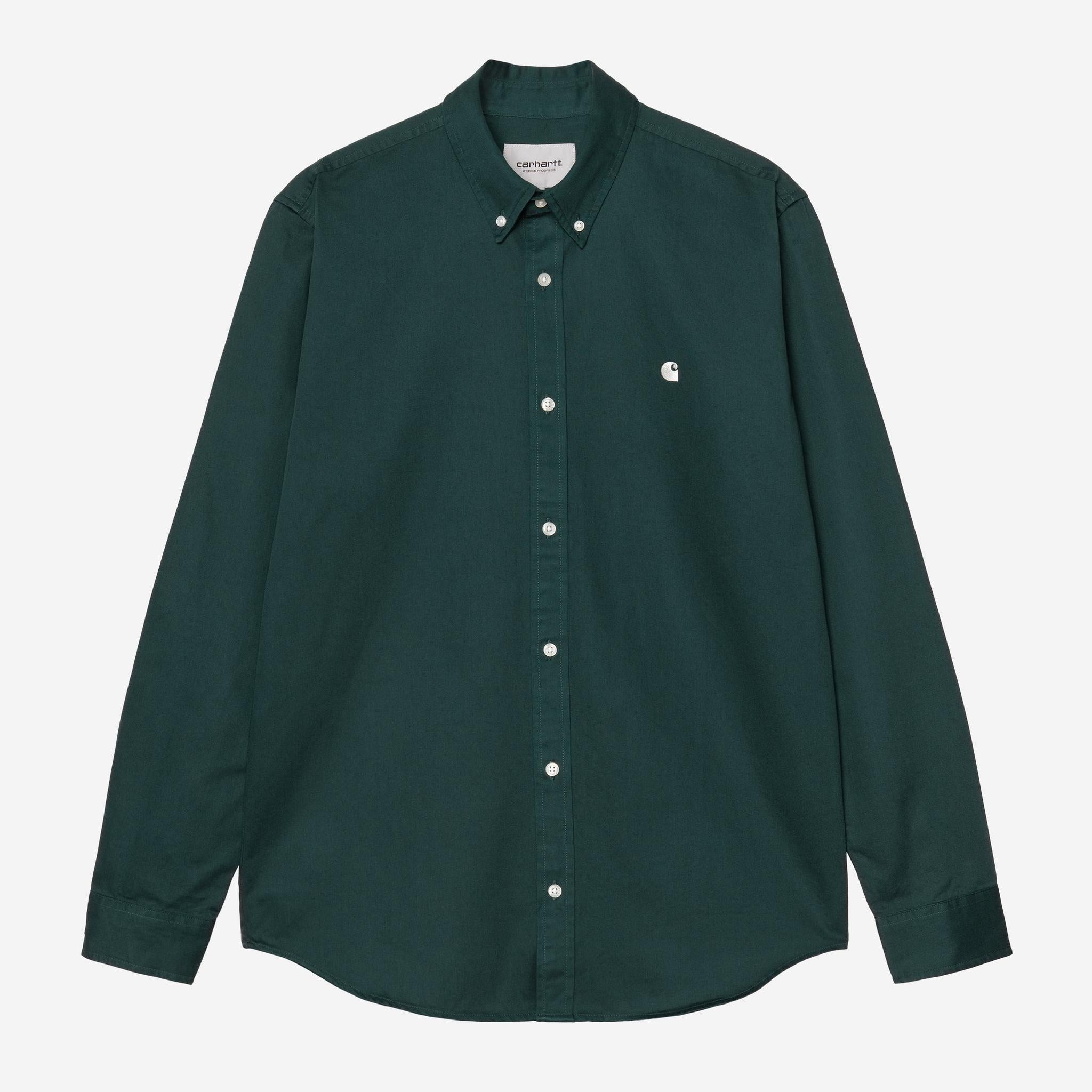 The Carhartt WIP Madison Shirt is a classic button down created in a midweight cotton twill, with a curved hem and contrast button detailing.