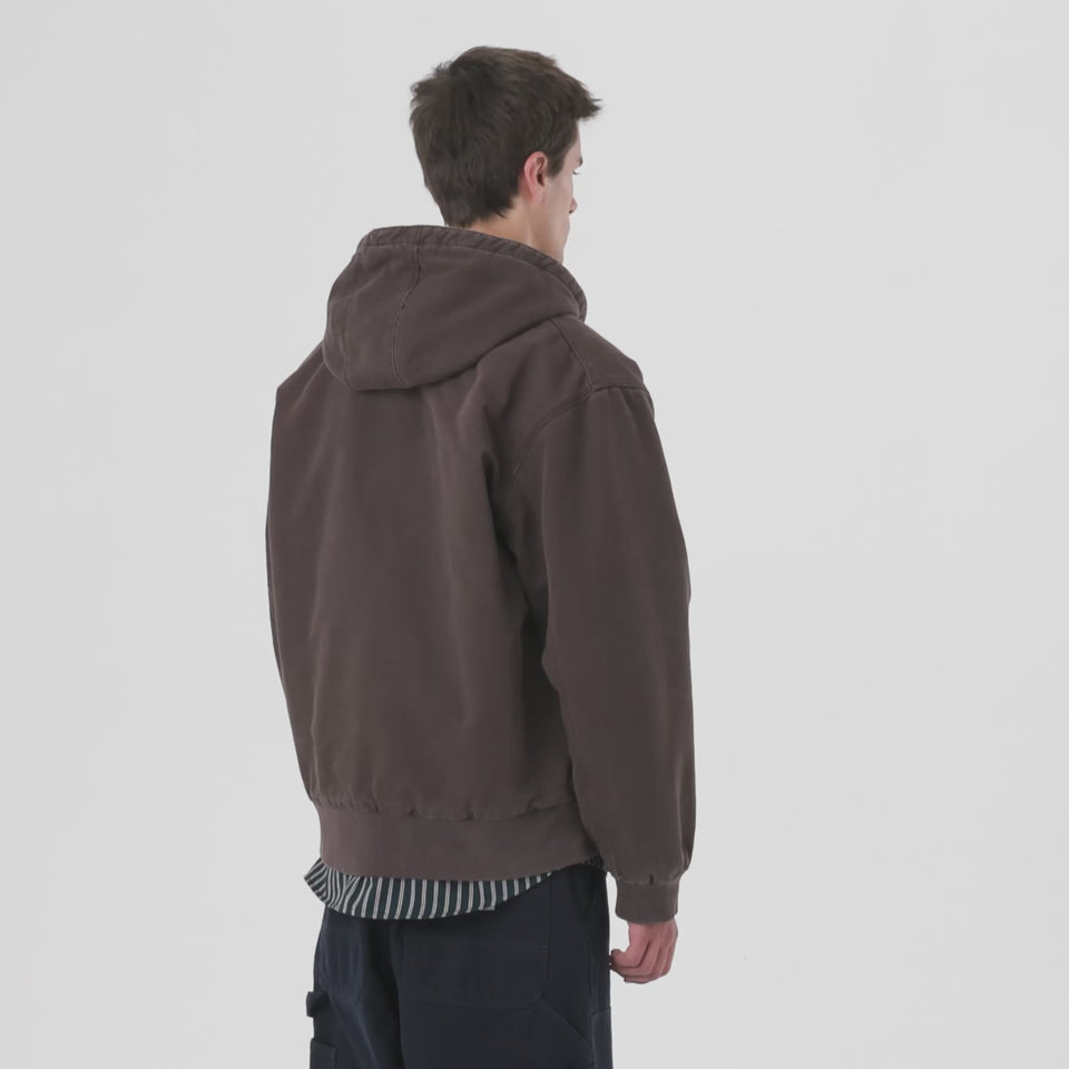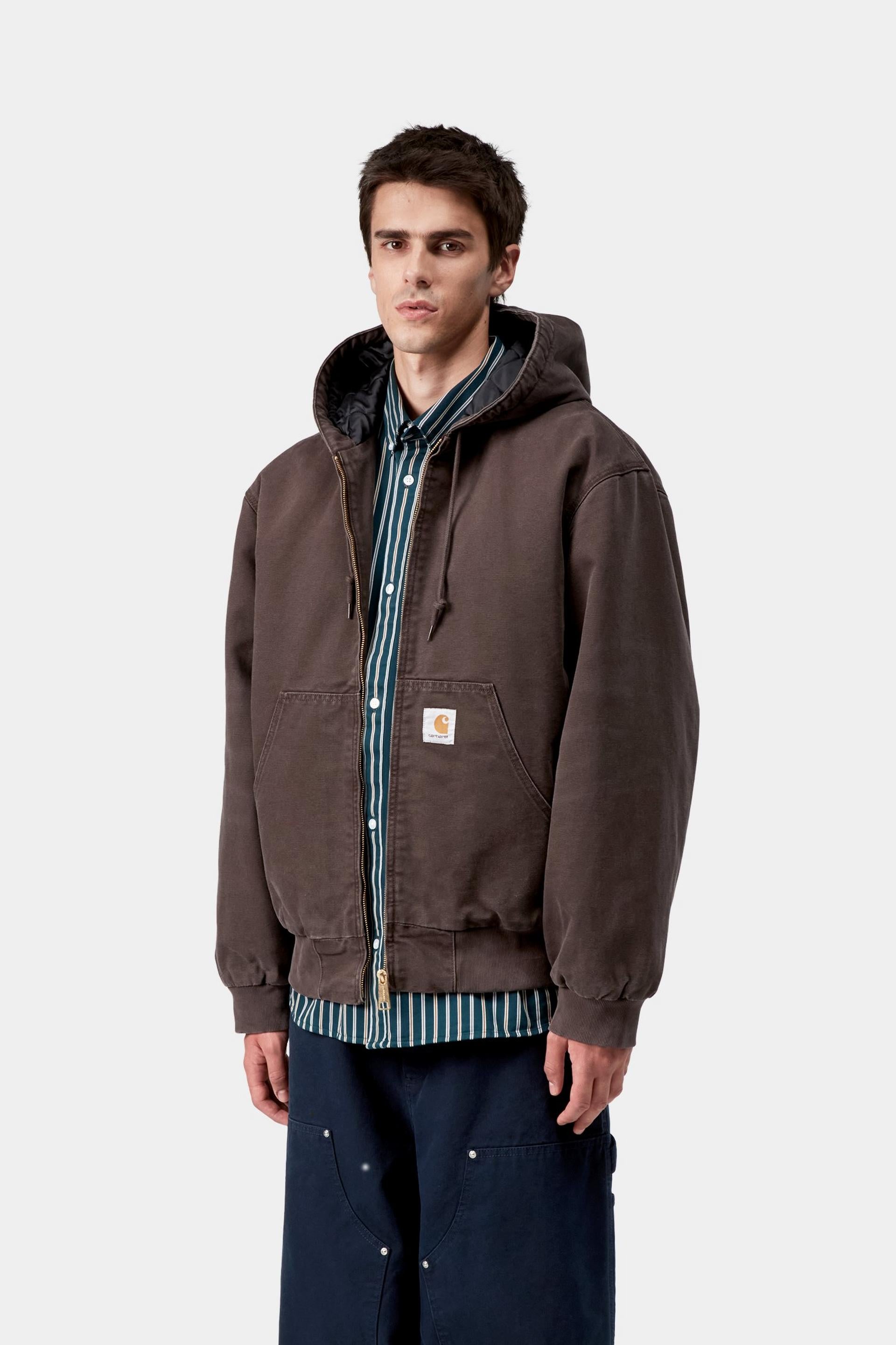 A Carhartt WIP OG Active Jacket is made of 12 oz organic cotton Dearborn Canvas. It is a heavyweight, insulating style cut in our original loose fit, and features a diamond-quilted lining, as well as a ribbed hem and cuffs. A kangaroo pocket, adjustable hood and zipped front fastening offer functional touches, while triple-stitch details provide extra durability.
