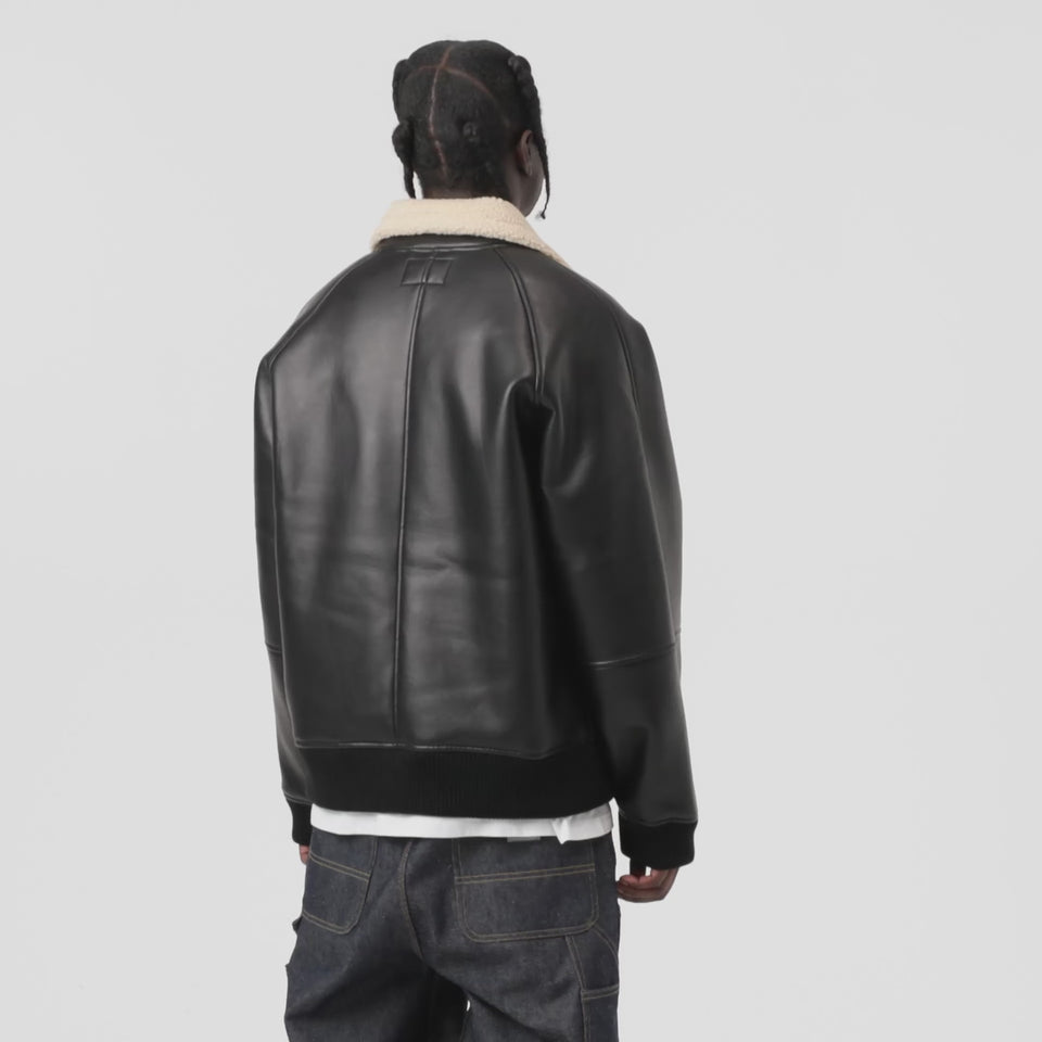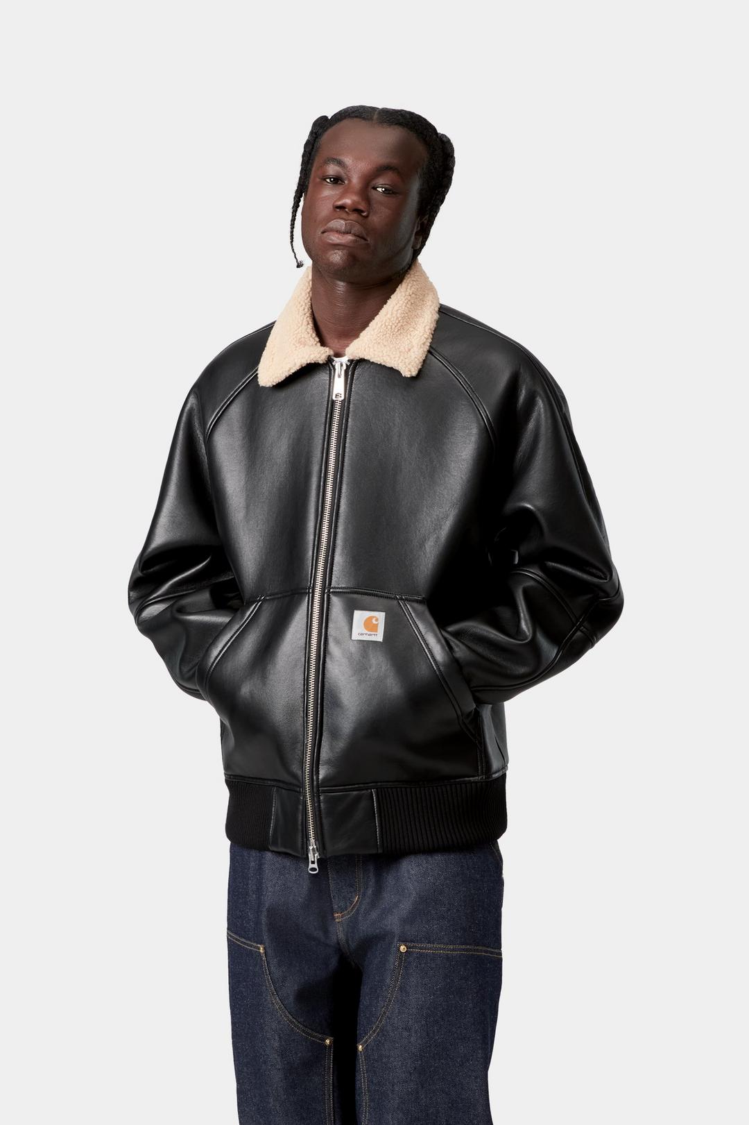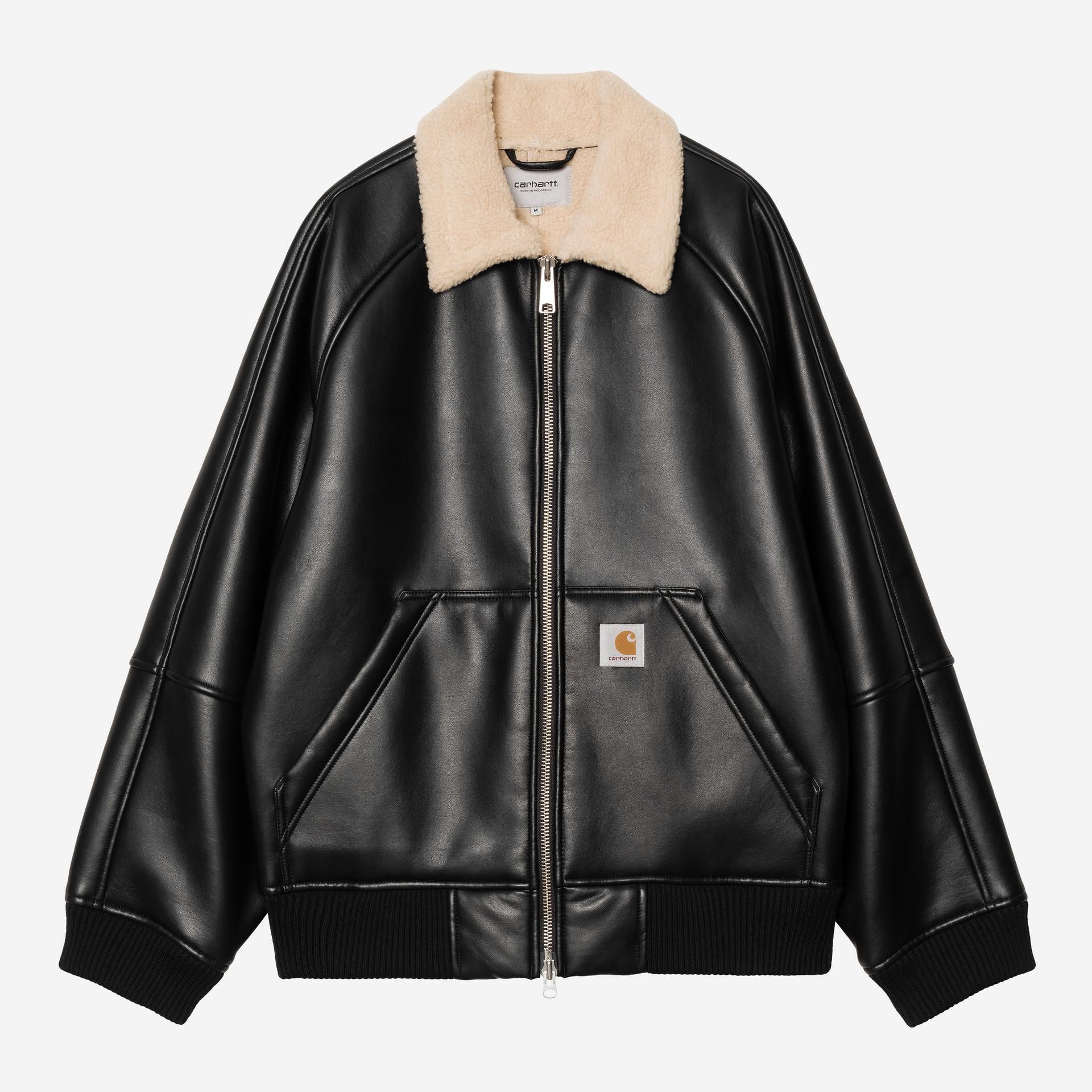 The Carhartt WIP Shepton Jacket is made from artificial leather with a pile collar and lining. It features a two-way zip, ribbed cuffs and a kangaroo pocket. A woven Square Label completes the design.