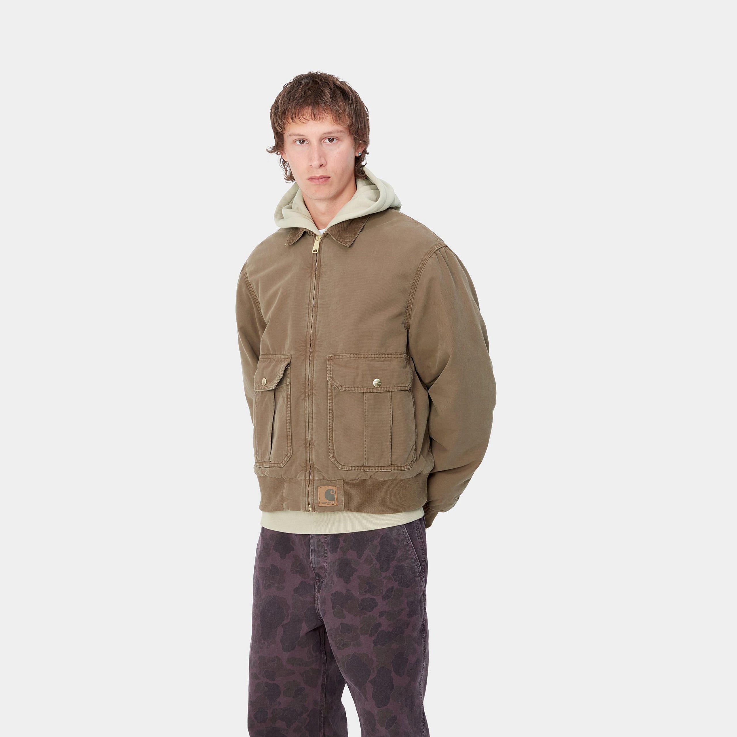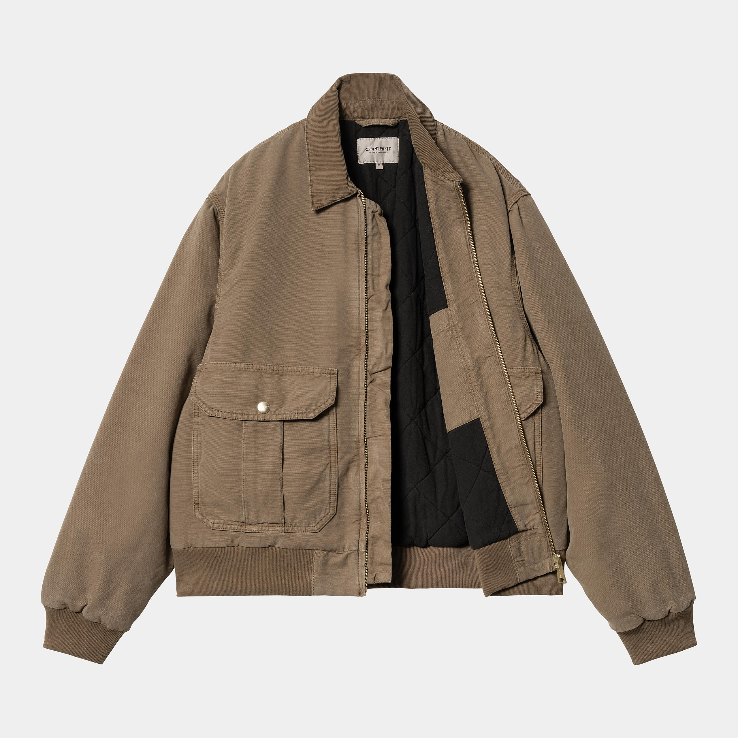 The Stanton Jacket is made from midweight cotton canvas, and is available in a stone-washed version for a softer feel, as well as a stone-dyed version, offering a lightly worn-in appearance. Inside, the jacket has a diamond-quilted, poplin lining in the body and a nylon, quilted lining in the sleeves. A rib-knit bottom band and cuffs, meanwhile, create a cinched effect and offer additional insulation. Triple stitching and a corduroy collar appear on the outside. An artificial leather Square Label completes the design.