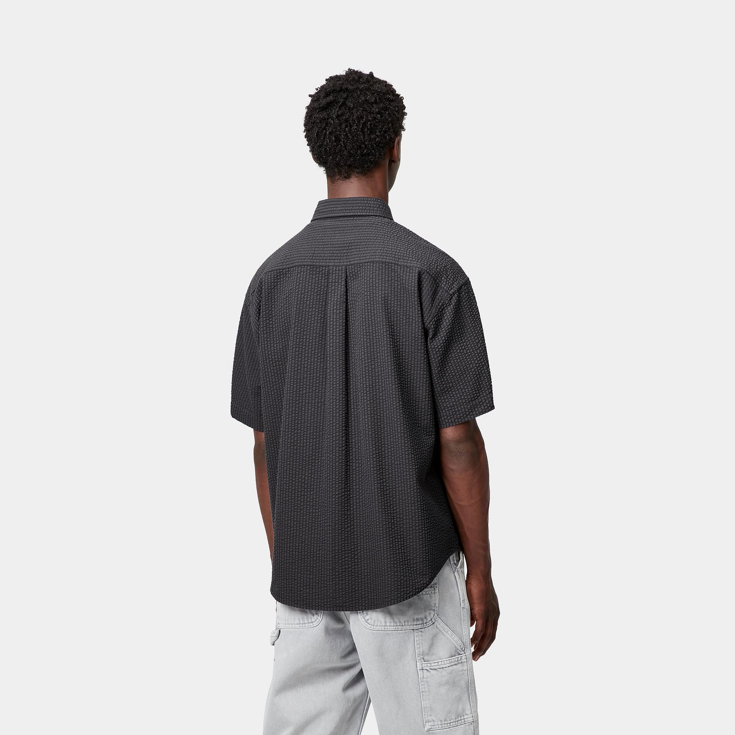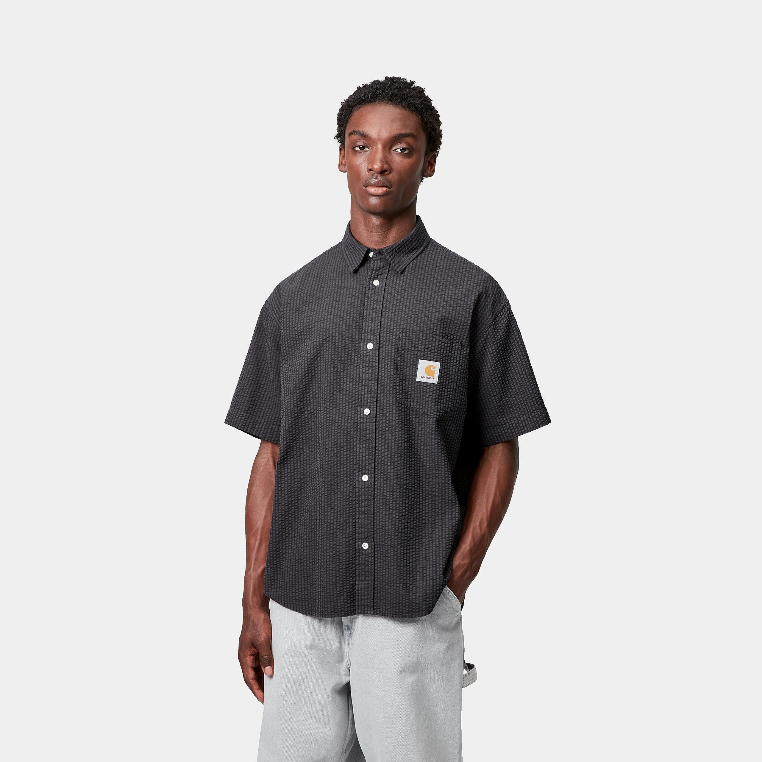 The Carhartt WIP Toland Shirt is made in a loose fit from lightweight, textured seersucker cotton featuring subtle allover stripes. A woven Square Label appears on the chest pocket.