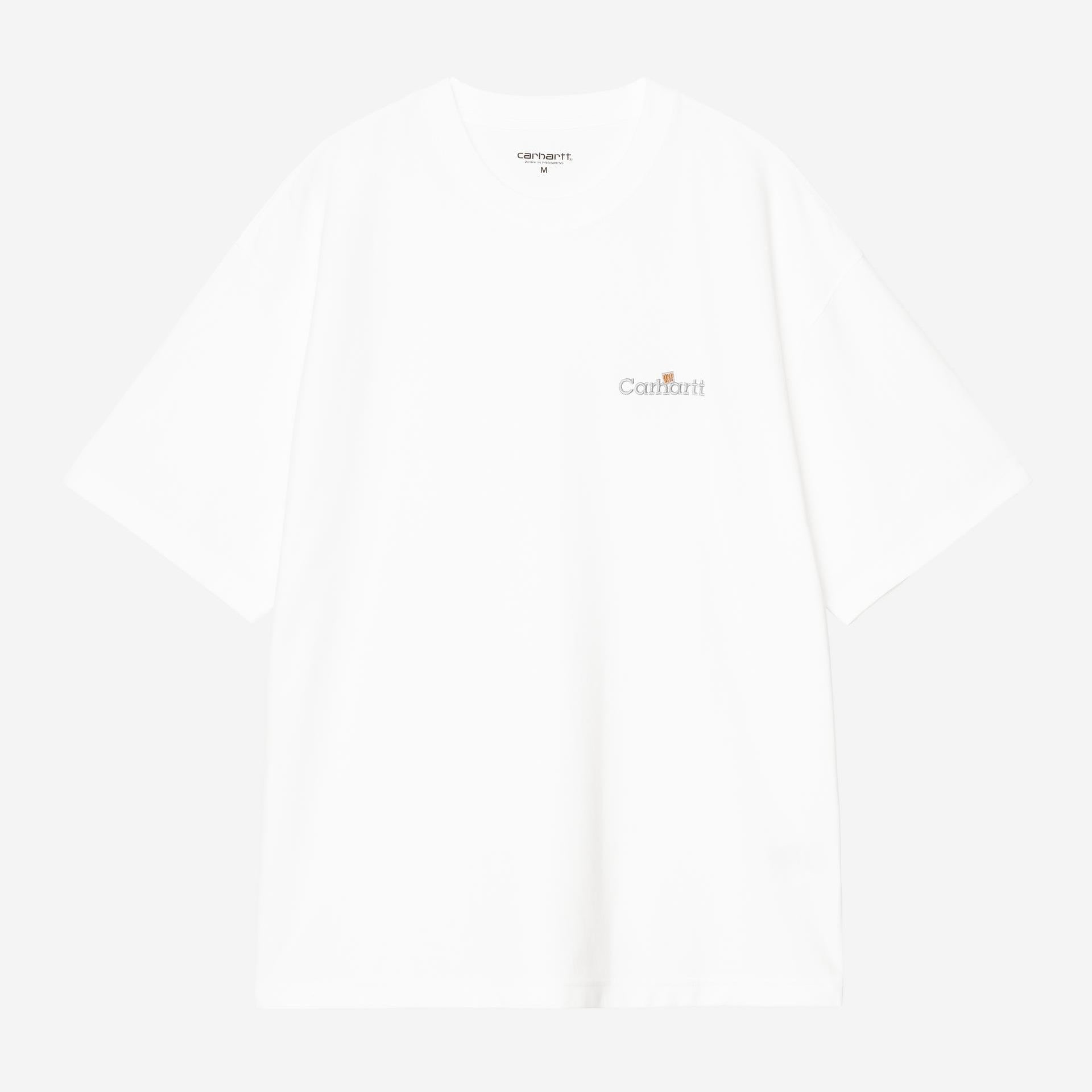 The Carhartt WIP Short Sleeve WIP Label T-Shirt is made in a loose fit from a midweight organic cotton jersey. An embroidered graphic appears on the chest.