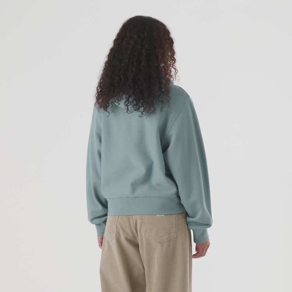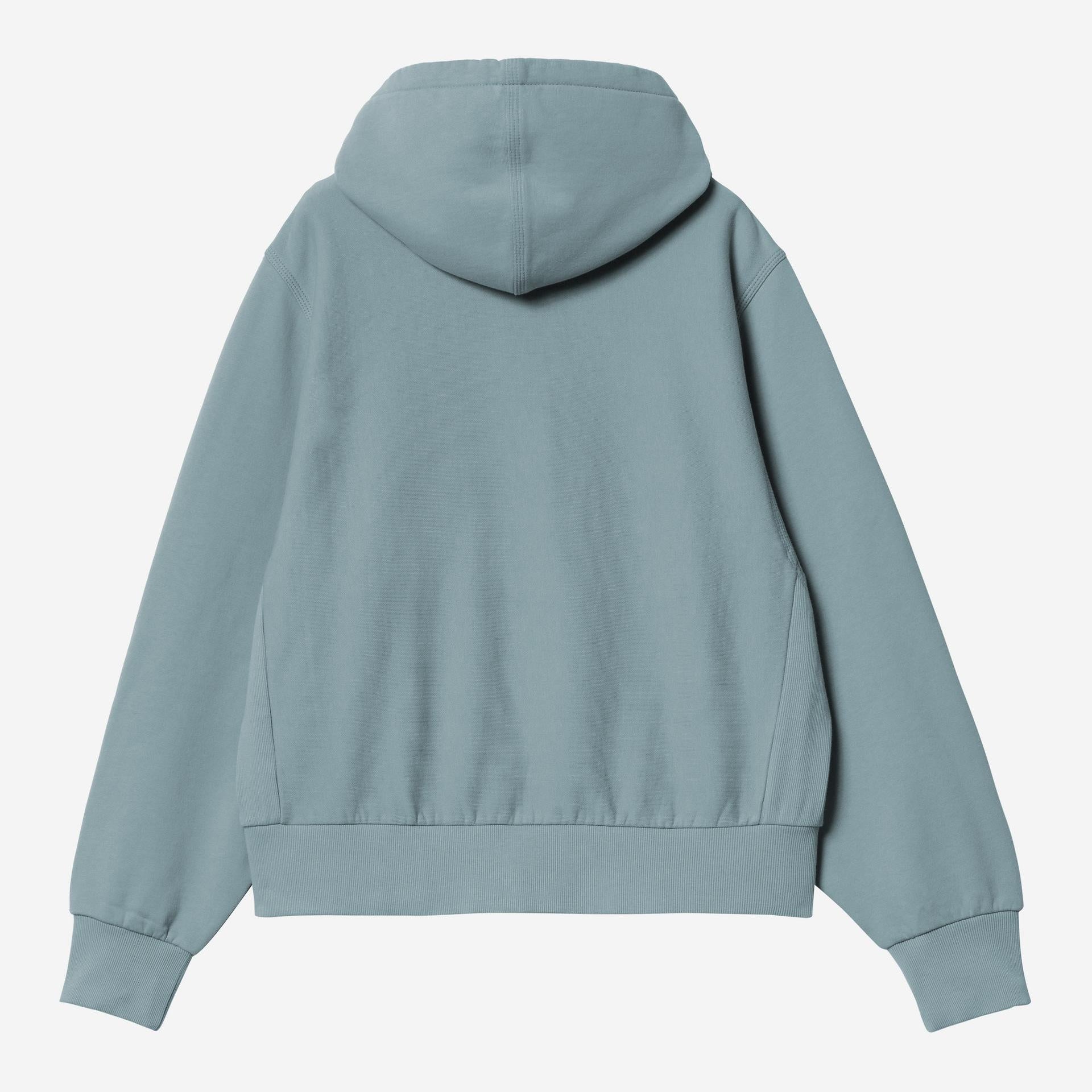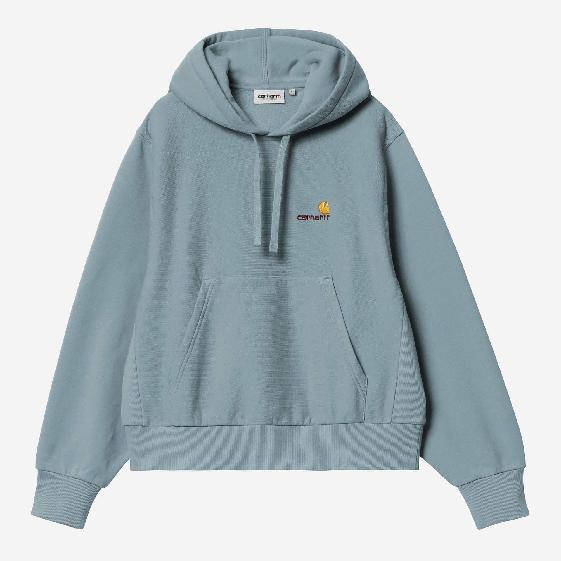 The Carhartt WIP Women's Hooded American Script Sweatshirt is made from heavyweight, brushed polycotton jersey with a fleece-like backing. The item has a loose fit. Additionally, it has been garment-washed for a softer feel. A two-tone, embroidered American Script logo appears on the chest.