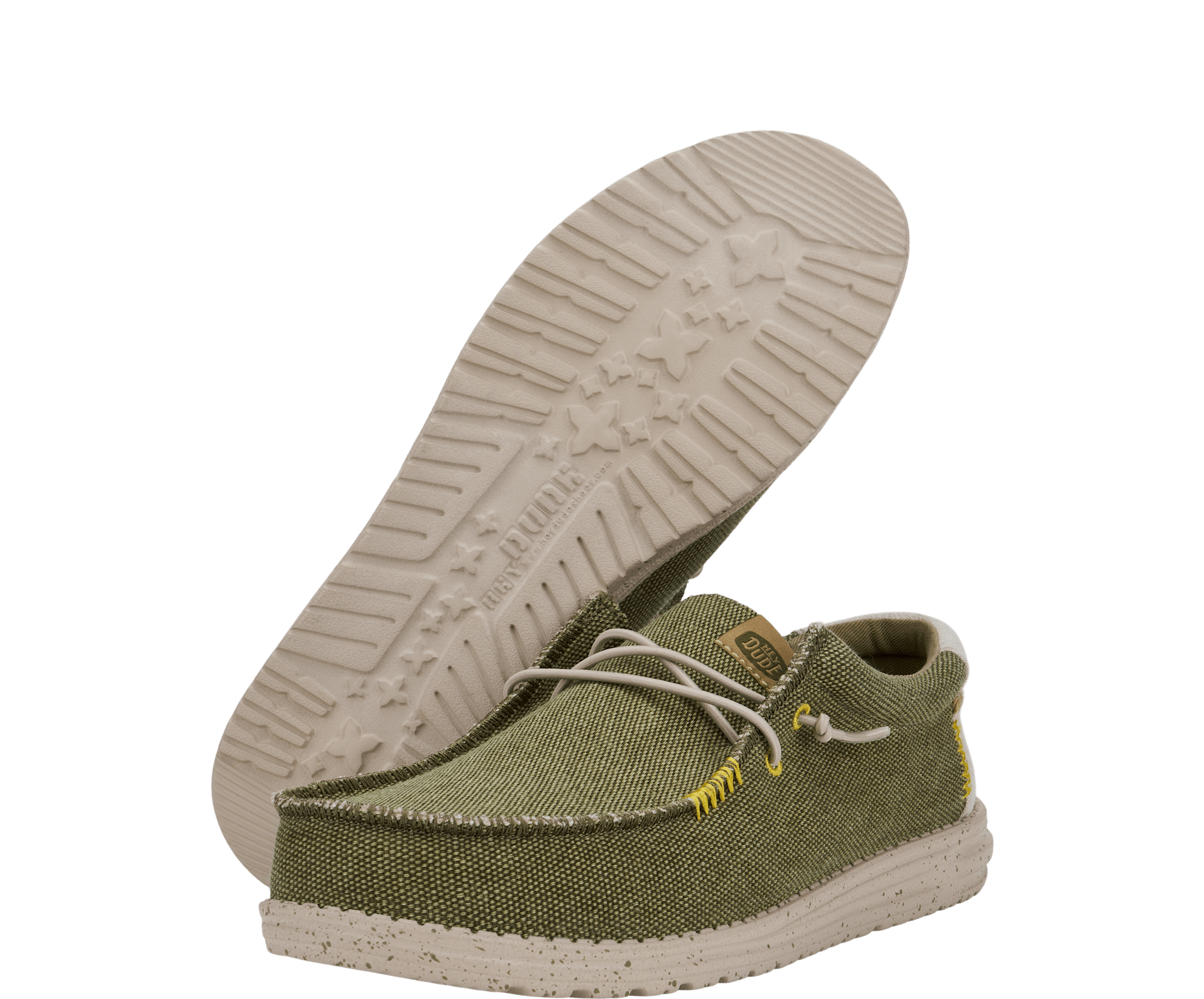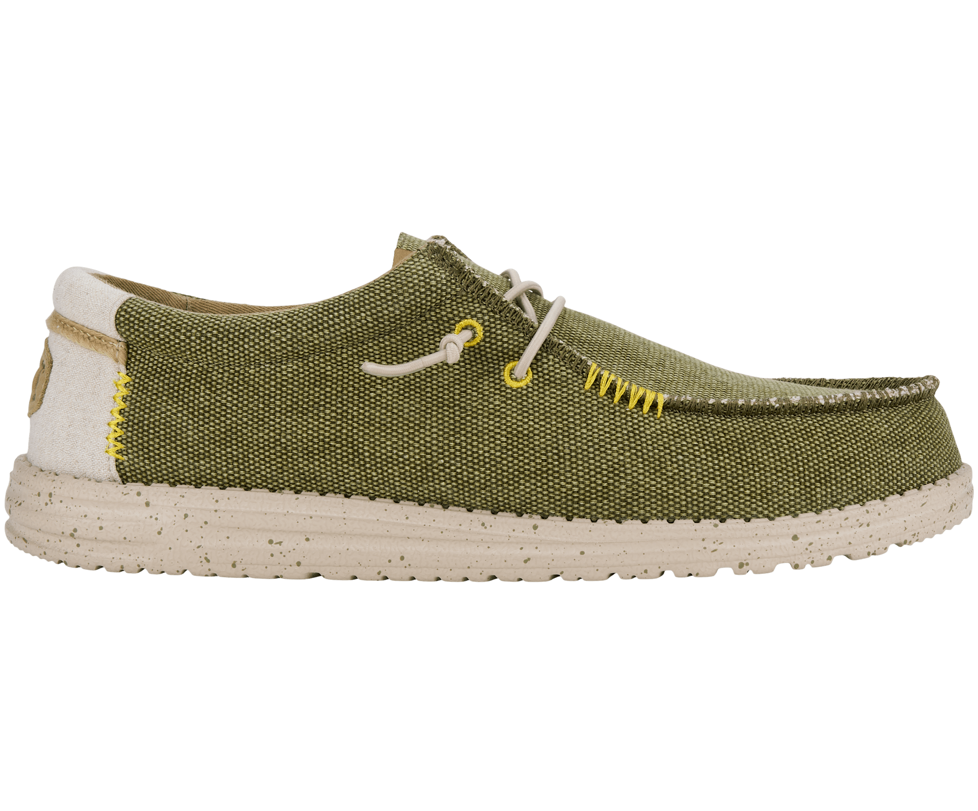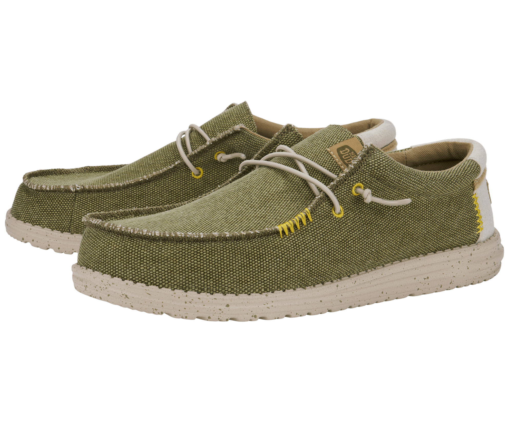 Buy Hey Dude Mens Wally Coastline Jute Moccasin | Olive with confidence as The Foot Factory is an authorised retailer