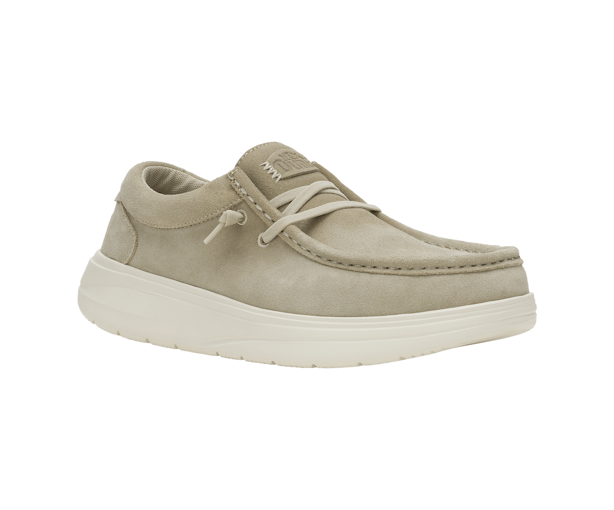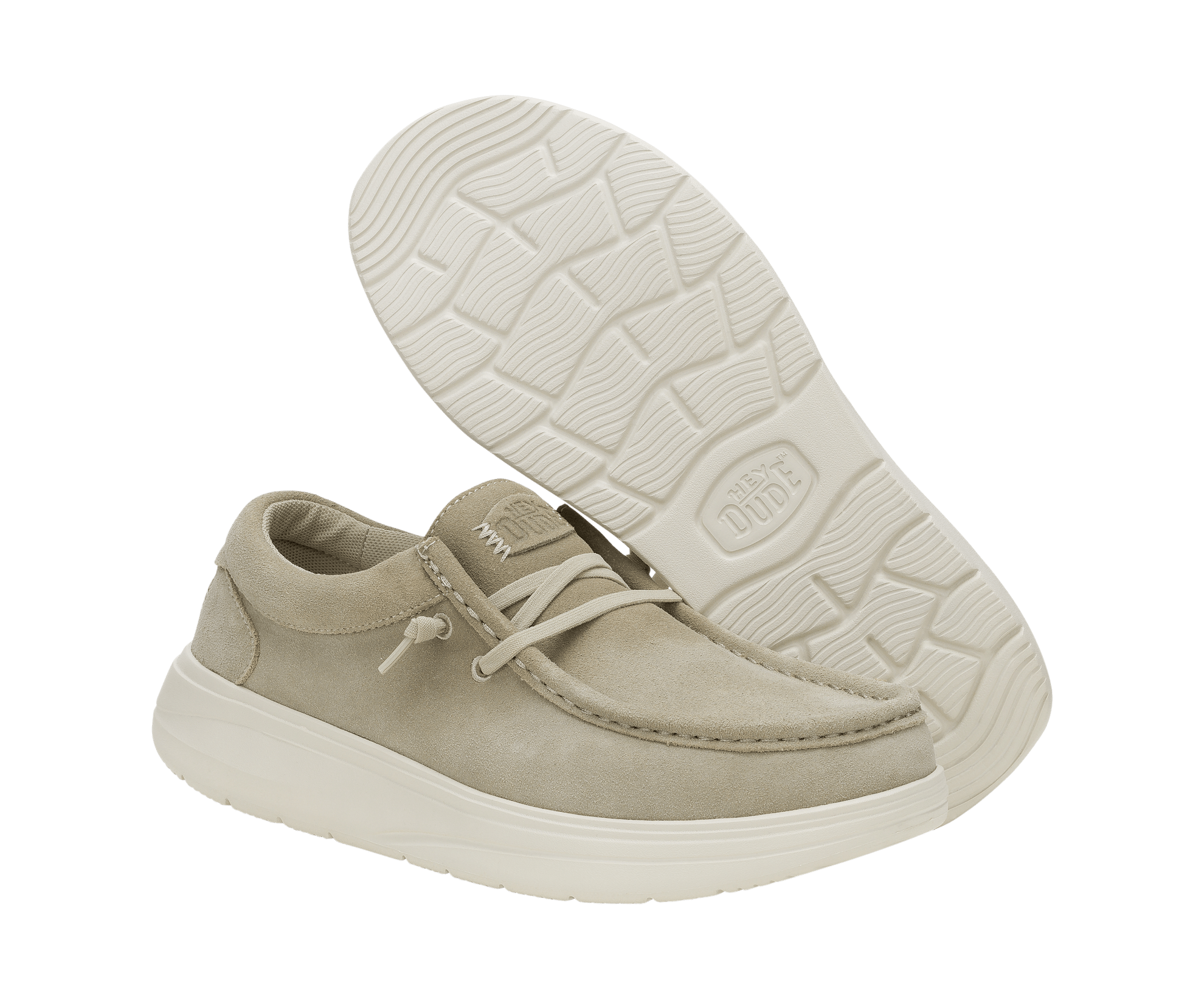 Buy Hey Dude Mens Wally COMF Suede Moccasin | Stone Grey / Silver Birch with confidence as The Foot Factory is an authorised retailer