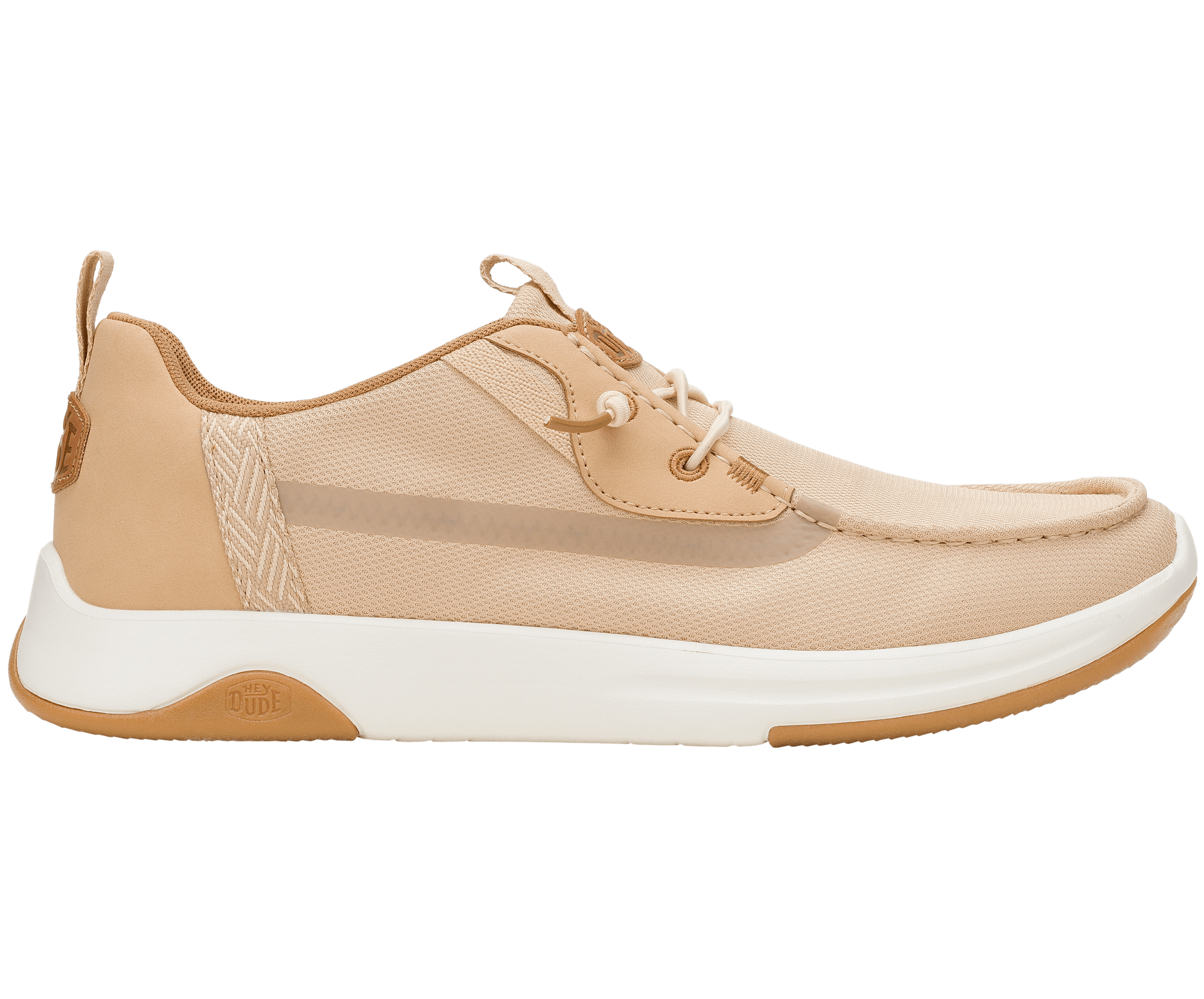 Buy Hey Dude Mens Wally Drift Mesh Moccasin | Irish Cream / White with confidence as The Foot Factory is an authorised retailer