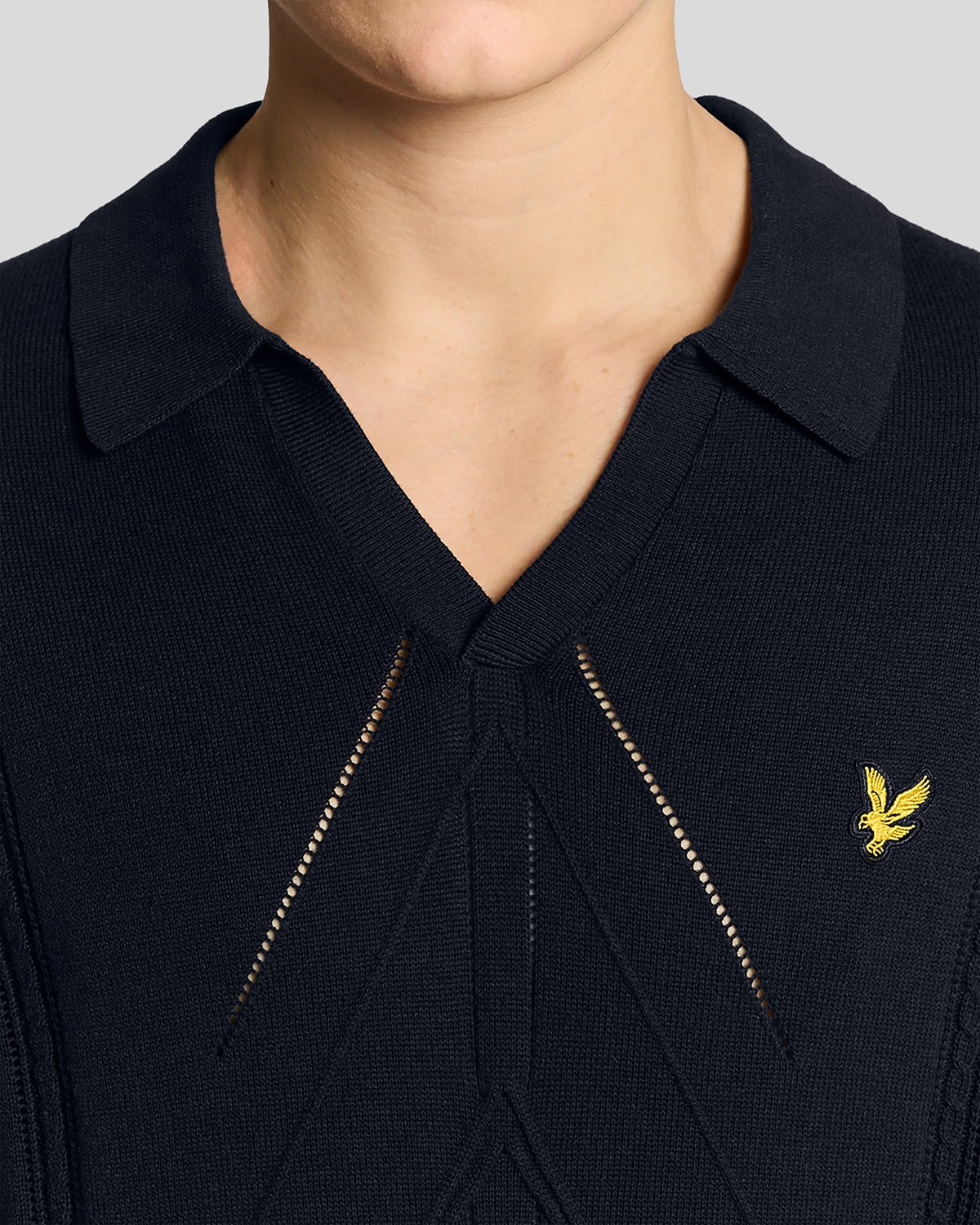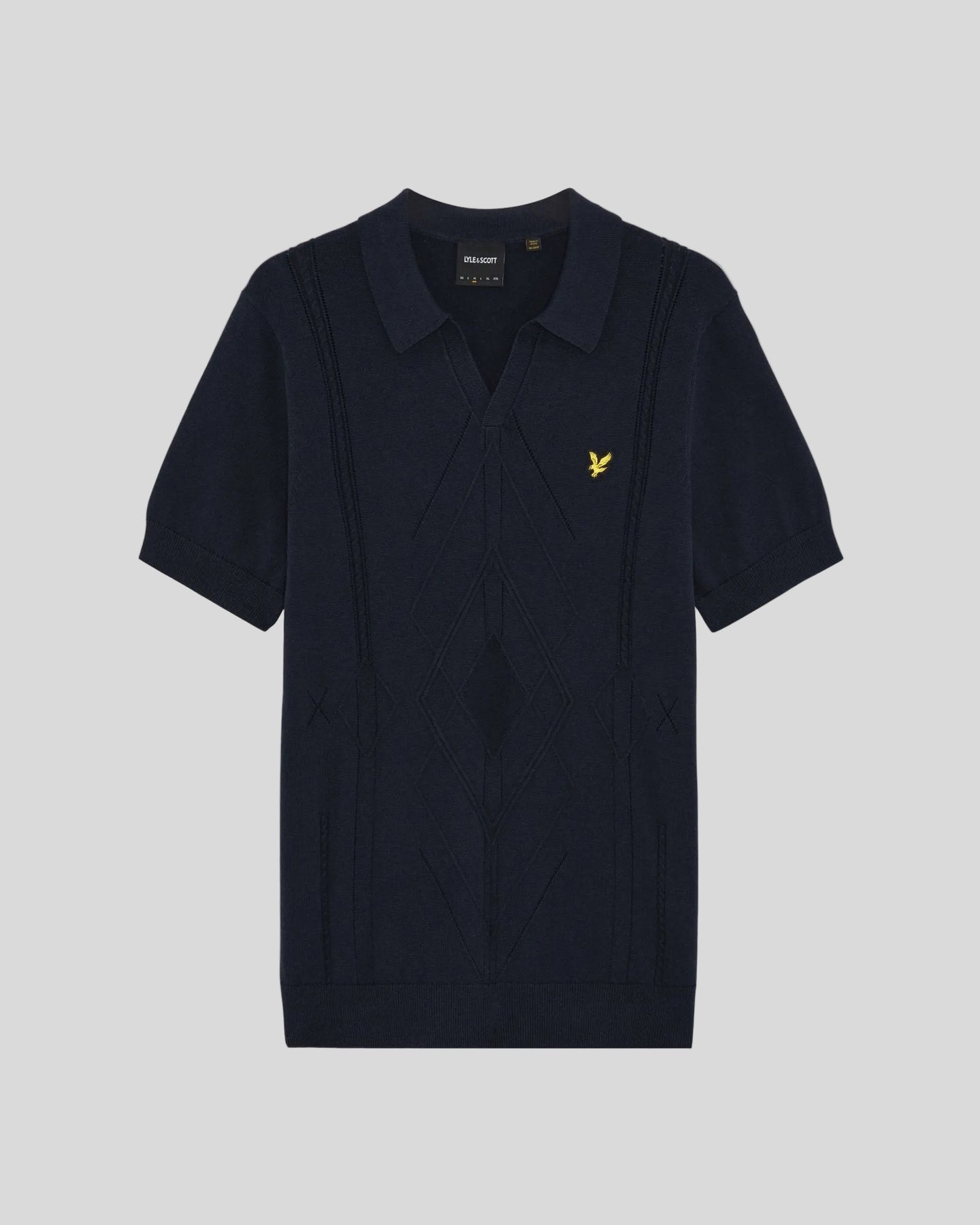 Lyle & Scott Mens Open Collar Argyle Knitted Polo Shirt | Dark Navy