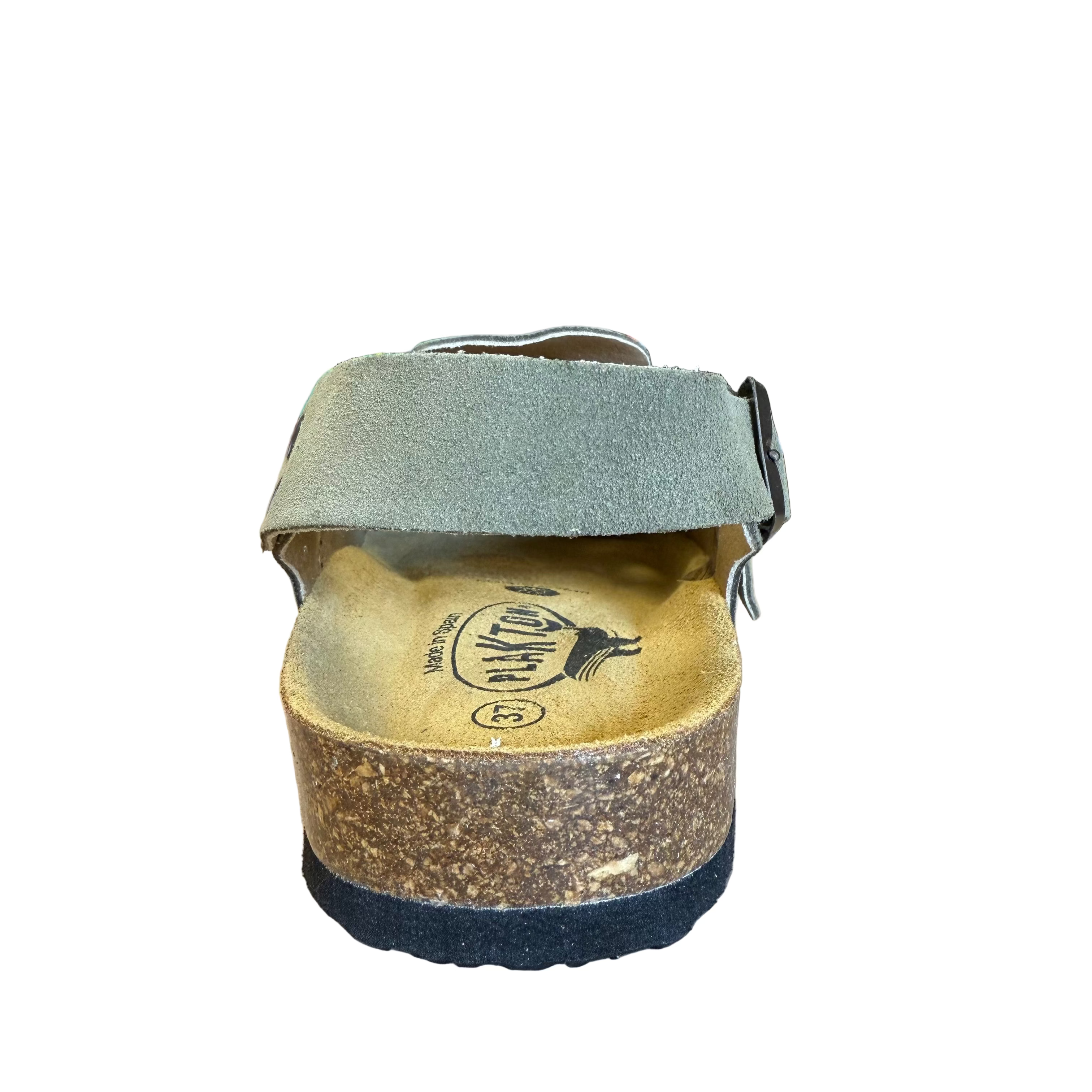 Plakton Womens Gibraltar Suede Double Strap Mule - Light Khaki