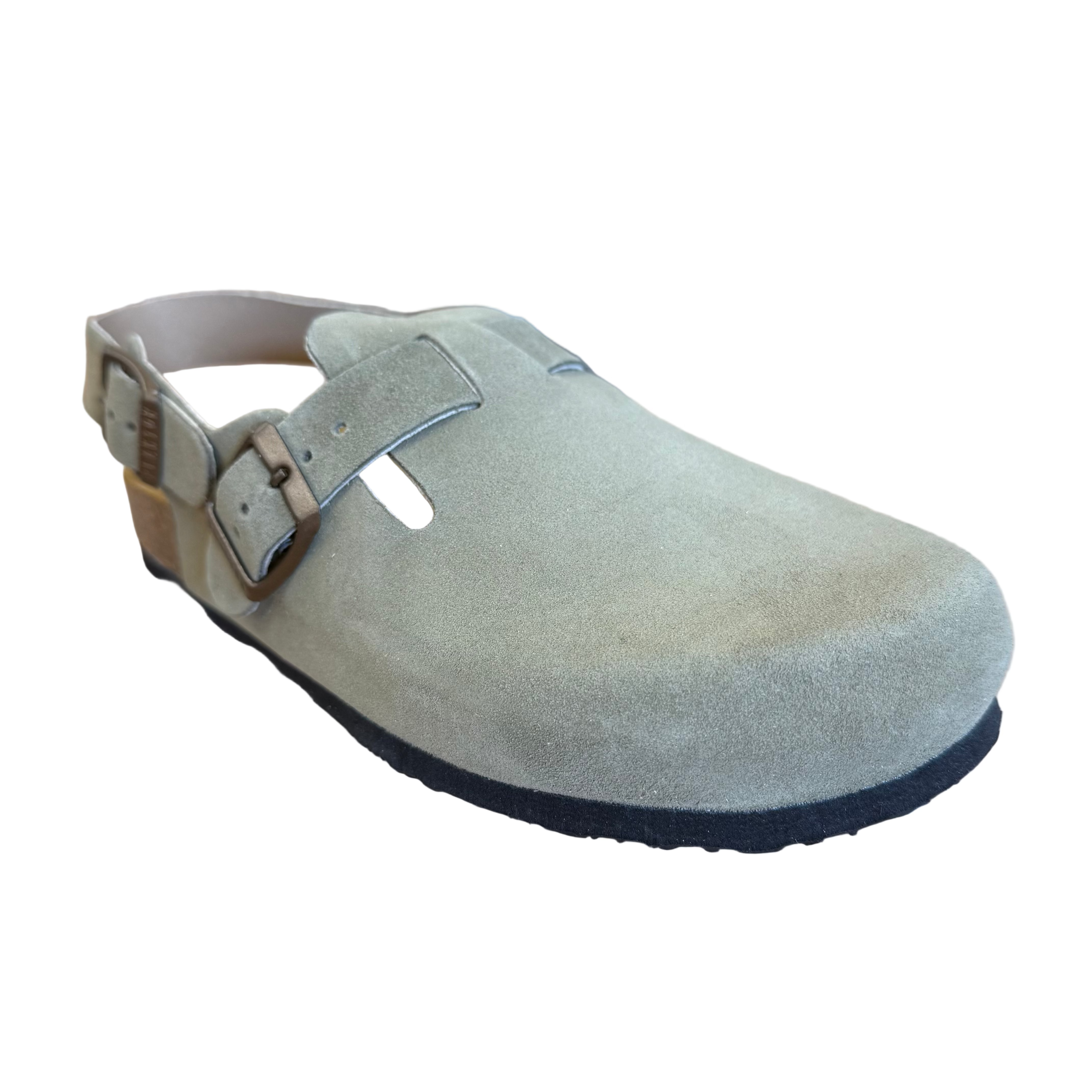 The Plakton Womens Gibraltar Suede Double Strap Clog in Light Khaki brings together classic design with a modern twist and everyday versatility. Crafted in Spain with premium suede and featuring a contoured cork-latex footbed, this clog delivers all-day support and a naturally breathable feel. Slip them on for effortless style—whether you're lounging at home or heading out for the day.