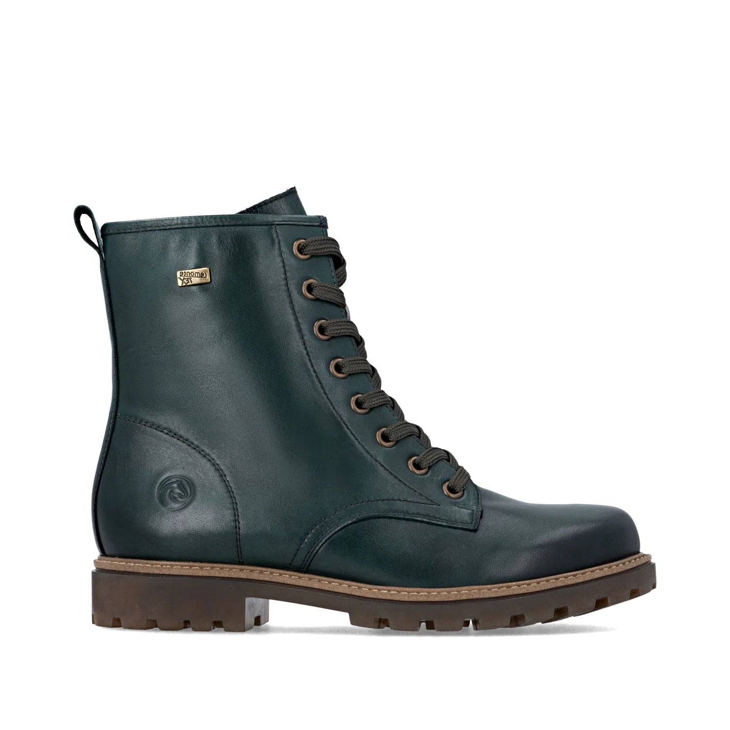 Modern design can be comfortable! These green remonte lace-up boots made of smooth leather are a real eye-catcher! The clever combination of lacing and zipper guarantees a perfect fit and optimal support. A grippy and cushioning sole and the padded and removable insole are further arguments for this model. Thanks to the comfort width, there is enough space in the forefoot area. The remonteTEX membrane offers protection against wetness and wind. The microvelour lining is light and breathable for a comfortable feeling all day long. That's where the high spirits come in!