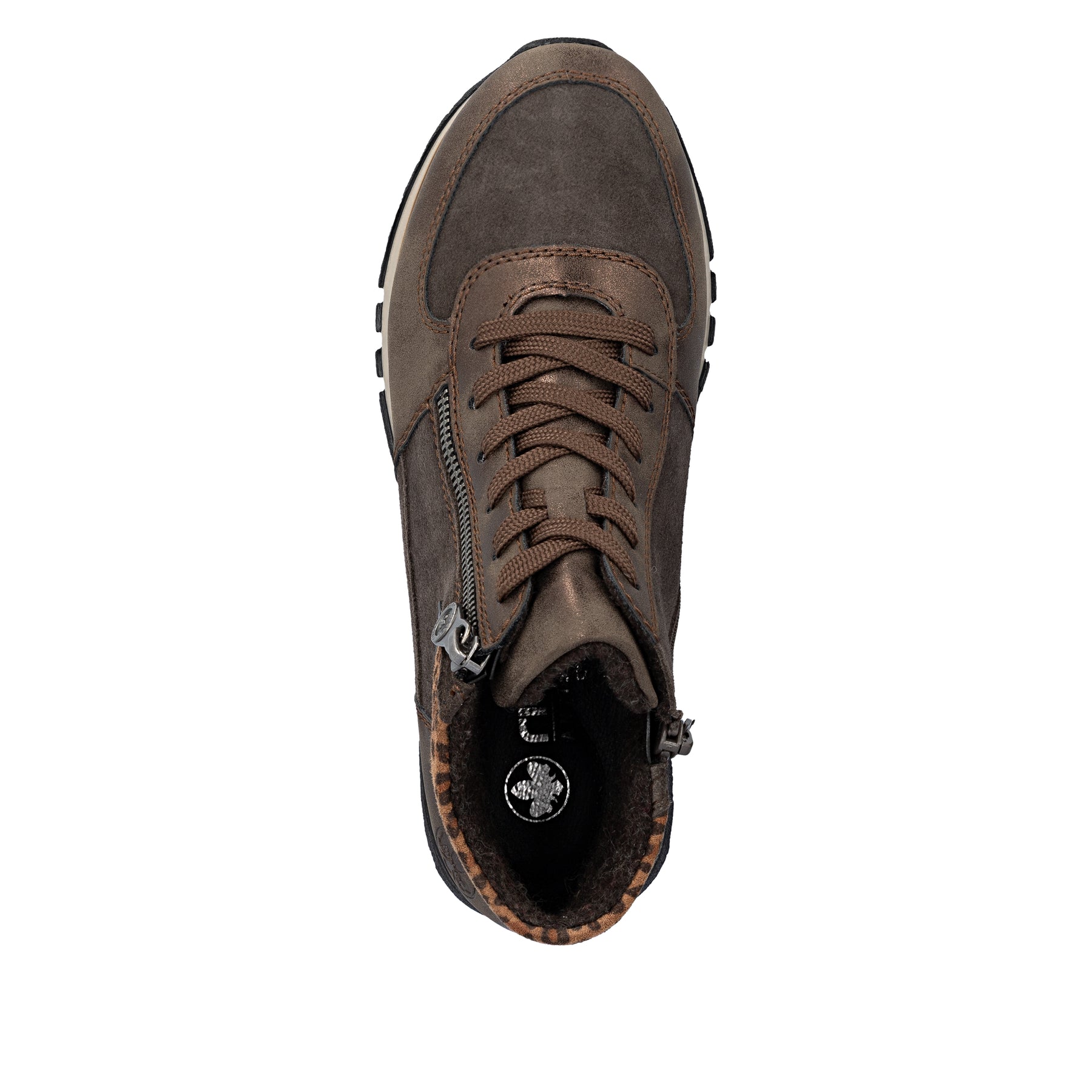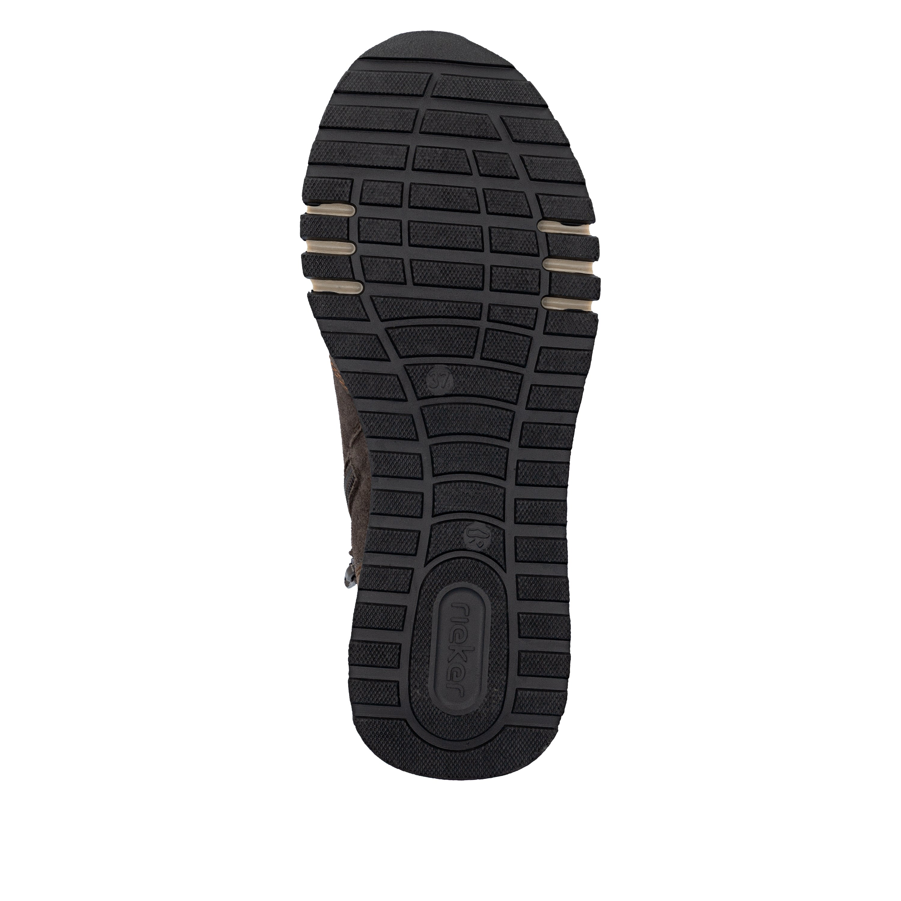 Step in style with the Rieker Women’s Fashion Ankle Boot in a warm rustic brown, featuring a fun animal print cuff. These boots combine a handy side zip with laces for easy on-and-off and a snug fit. The soft, flexible sports-style sole keeps you light on your feet, while the grippy tread handles all kinds of terrain. Inside, a padded, removable insole and extra width ensure comfort all day long. Plus, RiekerTEX water-repellent tech means you’ll stay dry rain or shine. Fashionable, cozy, and ready for adventure—your new go-to boot!