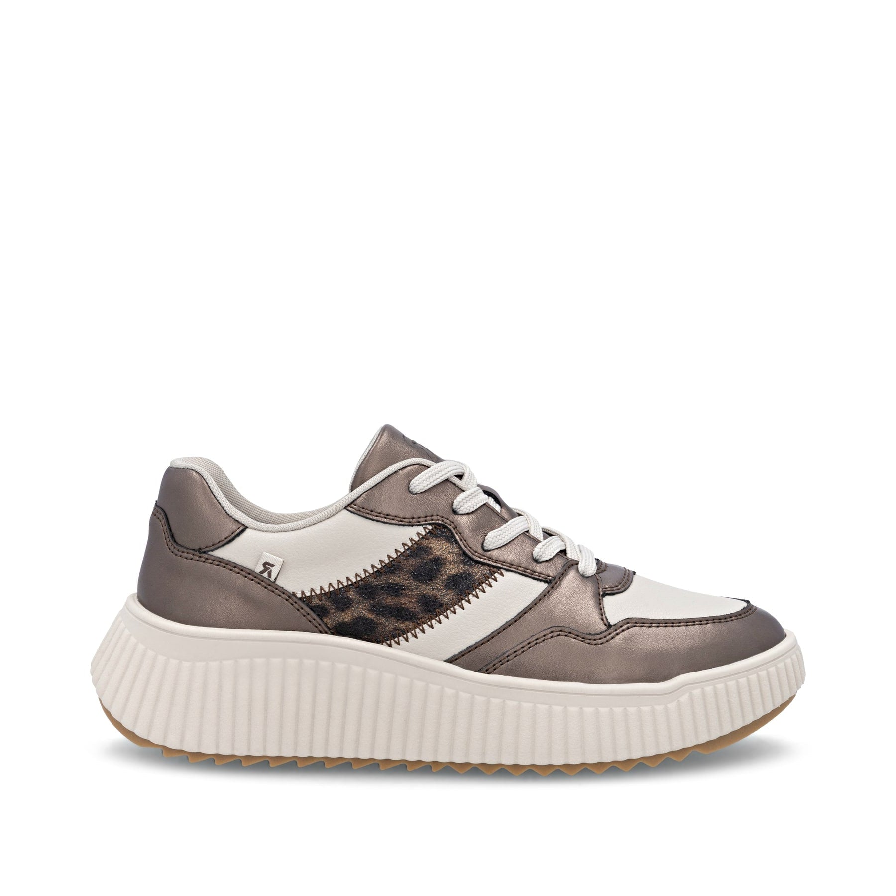 Effortlessly blending style with comfort, these beige Rieker leather sneakers are your new casual crush. The smooth leather and playful leopard print add a fun twist, while the laces promise a snug fit every time. With a featherlight, flexible sole and a cushy, removable insole, your feet will feel like they’re on a mini holiday. Plus, the breathable micro-velour lining keeps things fresh and comfy all day long. Get ready to make these low-tops your absolute favourites!