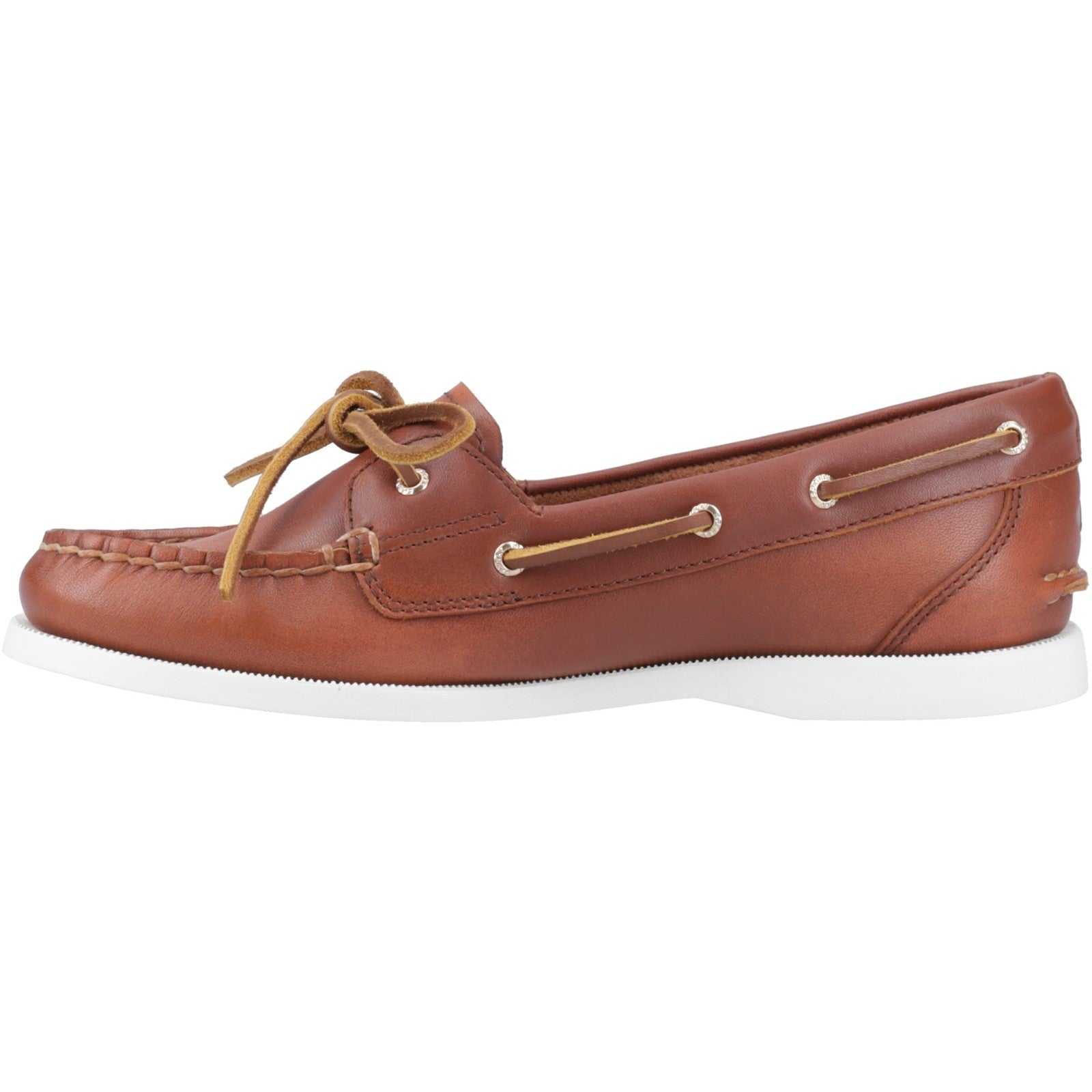 The womens Authentic Original 1-Eye Boat Shoe offers a timeless look anchored in the traditions of coastal style. This classic boat shoe features a luxurious leather upper, with refined copper eyelets, traditional moccasin stitching and rawhide laces