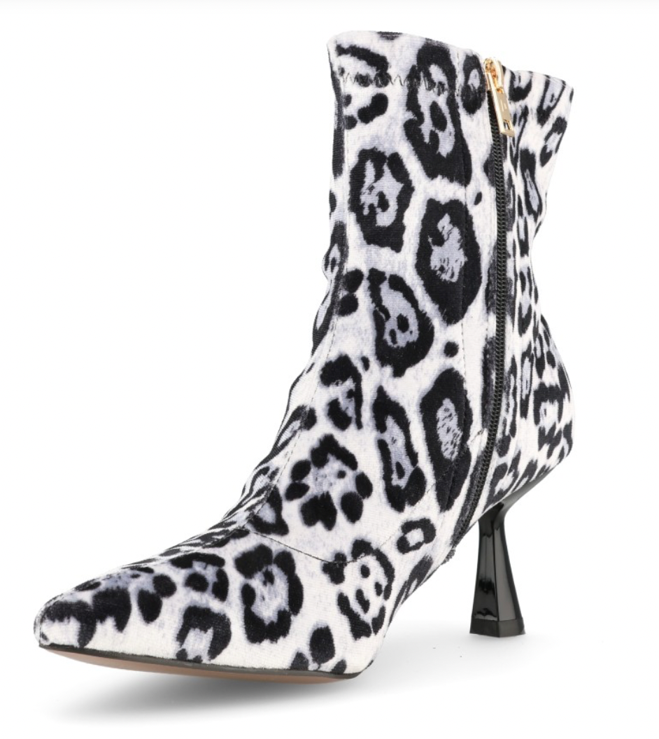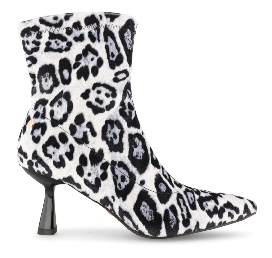 Make a bold statement with the Fire Love ankle boot. Designed with a striking animal-print upper and sharp pointed toe, this fierce style radiates confidence. The standout flared heel adds a playful edge, ensuring every step is unforgettable. Perfect for nights out or anytime you want your look to roar with personality.