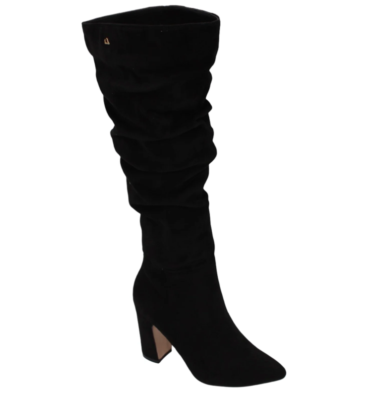 Step out in style with the Una Healy Famous Friends Tall Boot in sleek black suedette. Featuring a handy side zip for quick slipping on, a bold high block heel for confident strides, and a cuddly soft fleece lining to keep your feet cozy all day long.